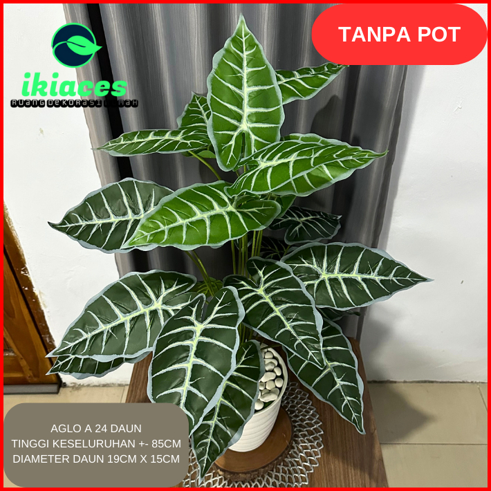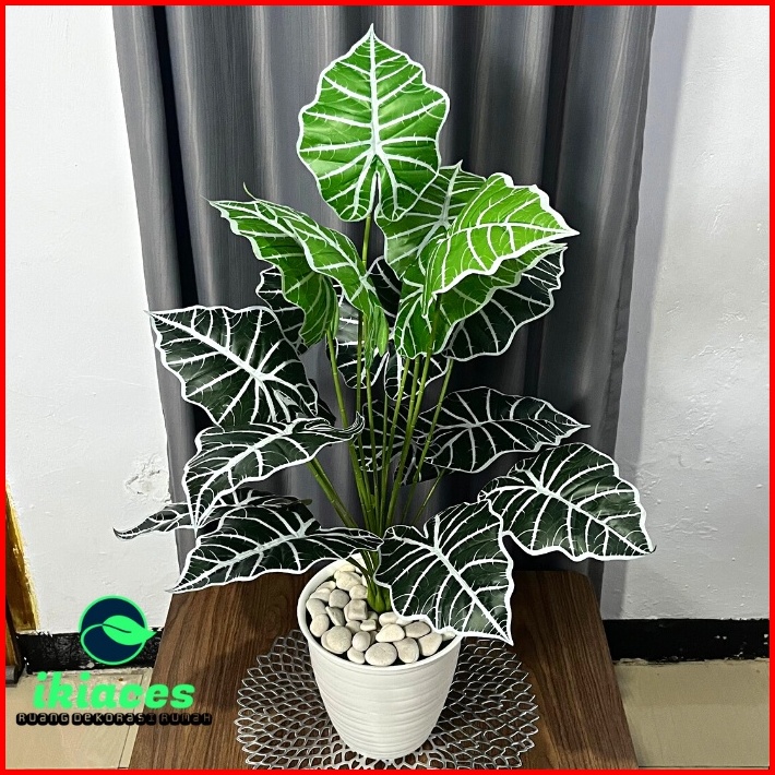 Daun Aglonema Artificial Daun Keladi Plastik Pot Bunga Hias Artifisial Daun Keladi Hias Dekorasi Pohon Plastik