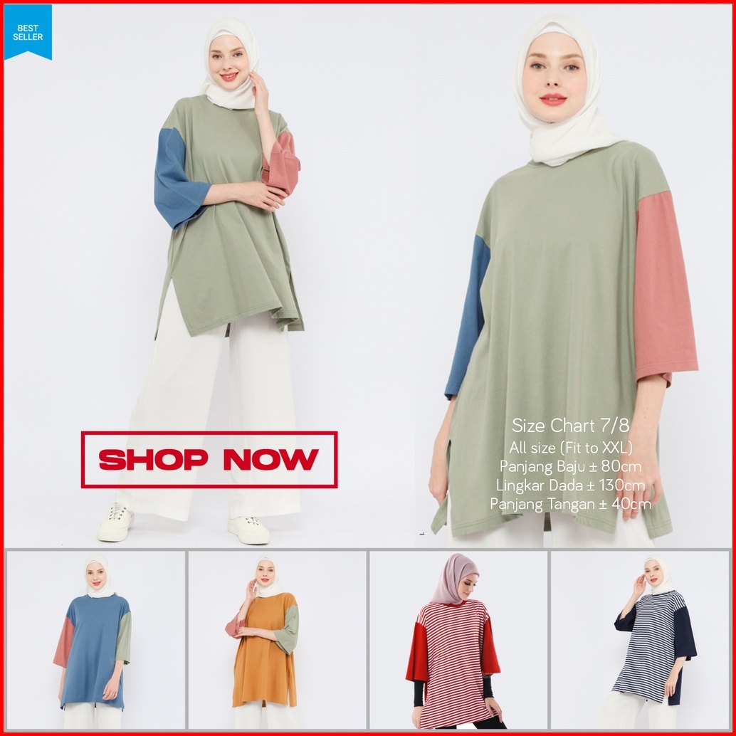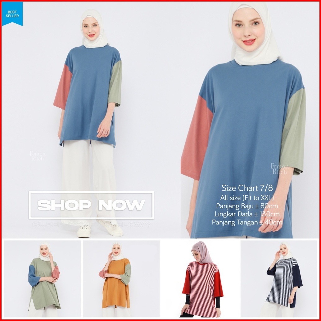 Kaos Oversize Wanita Lengan 7 8 Ld 130 Basic Oversized