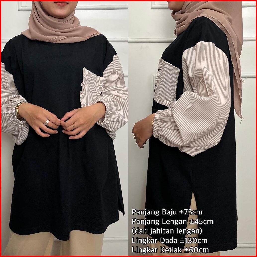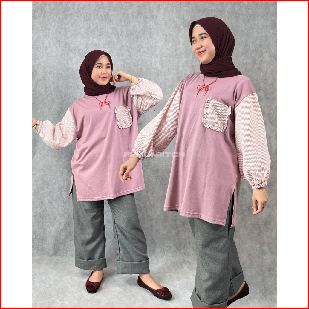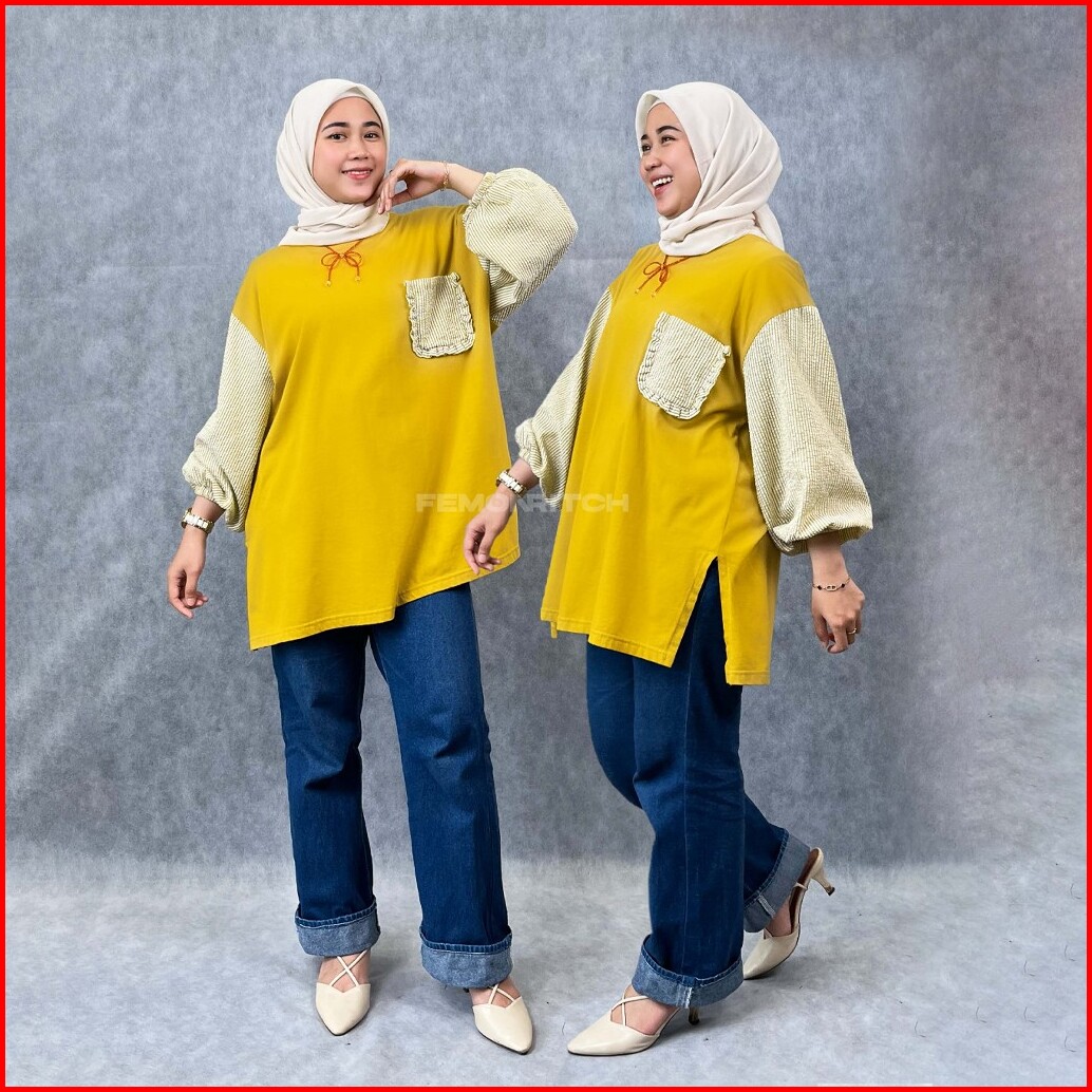 Atasan Wanita Blouse Oversize Elsleeve Pocket Femonritch Hijab Dan Wudhu Friendly