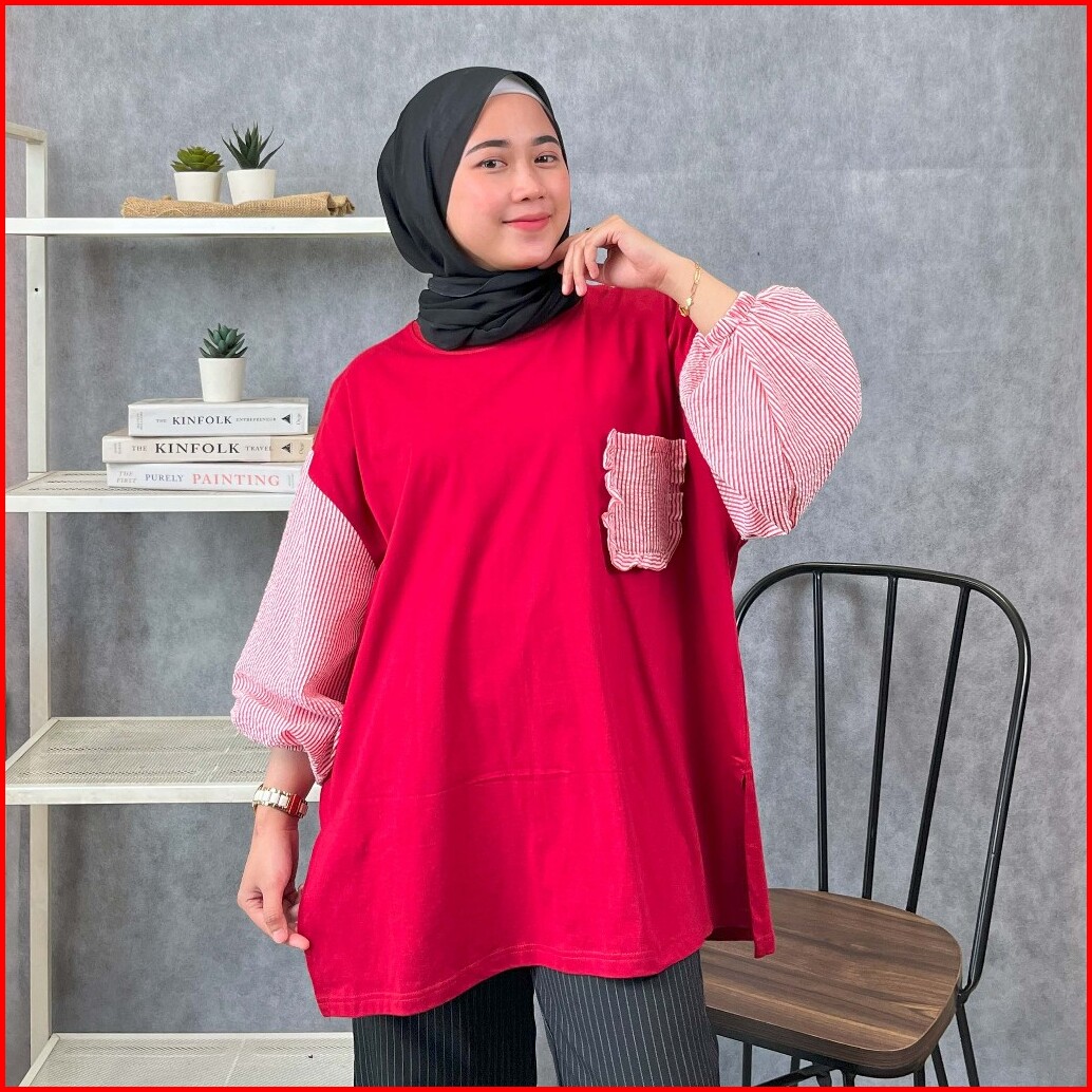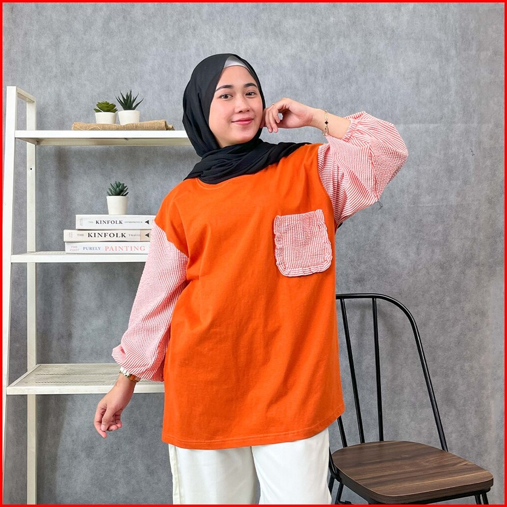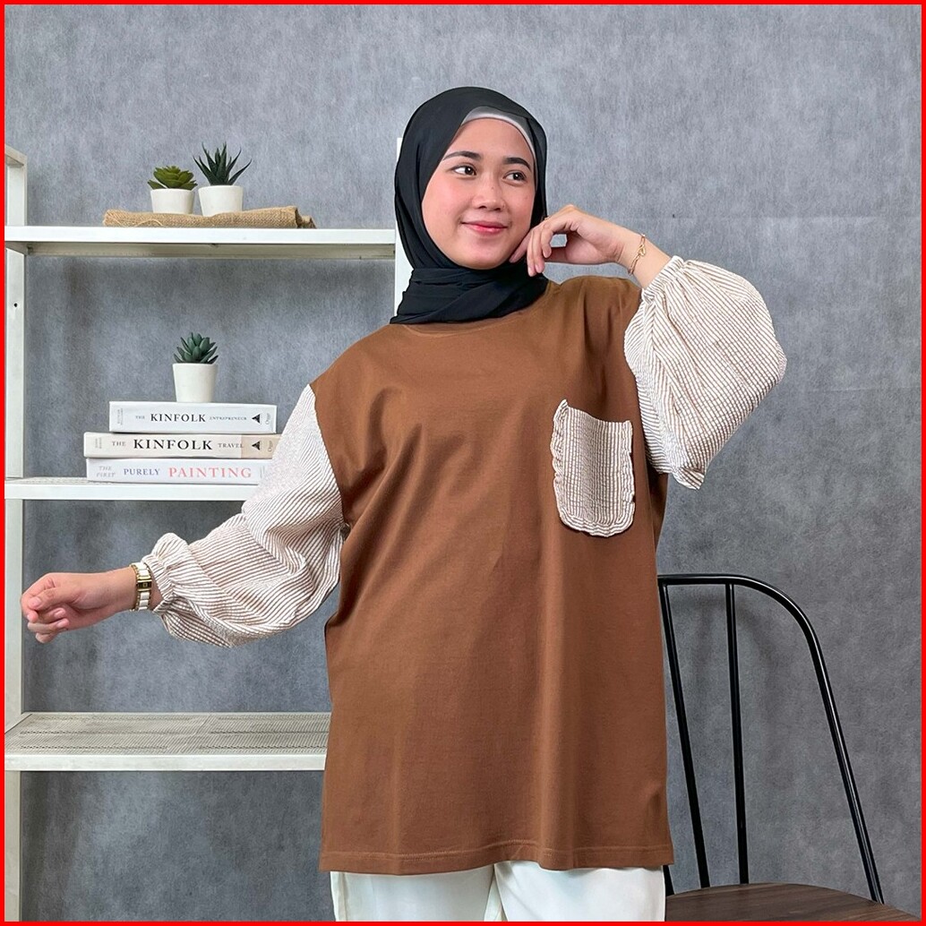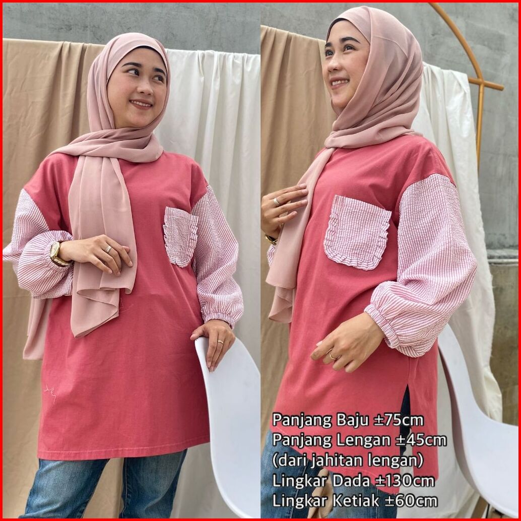 Atasan Wanita Blouse Oversize Elsleeve Pocket Femonritch Hijab Dan Wudhu Friendly