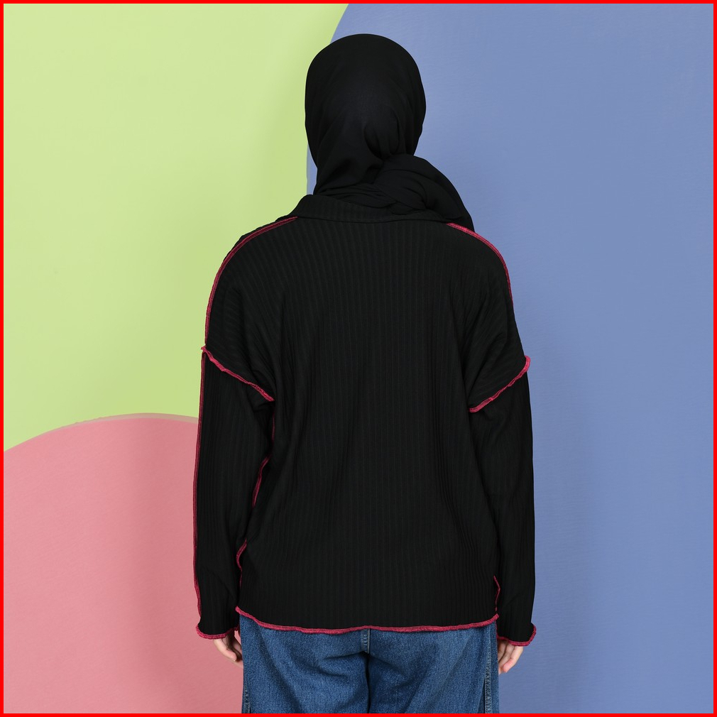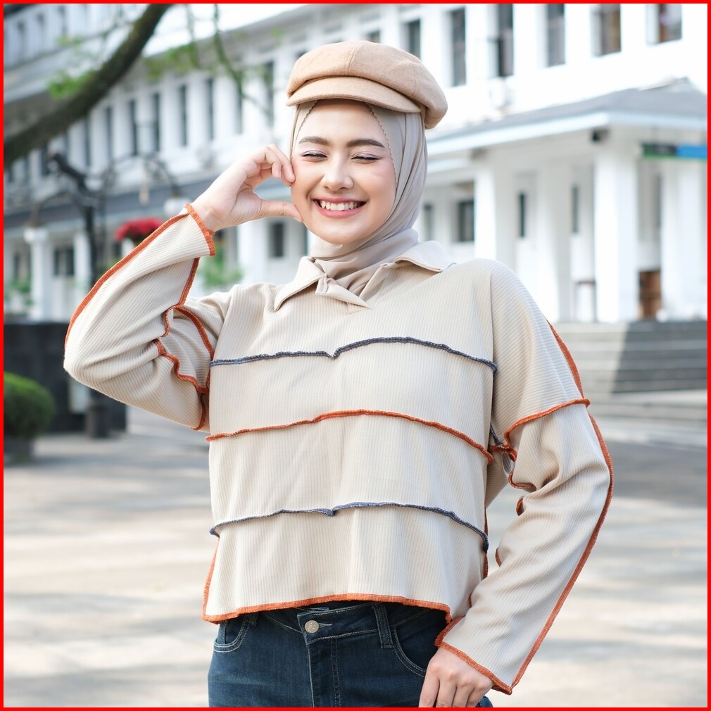 Mybamus Yuna Playfull Knit Tops Atasan Muslim Wanita Blus Knit Lengan Panjang