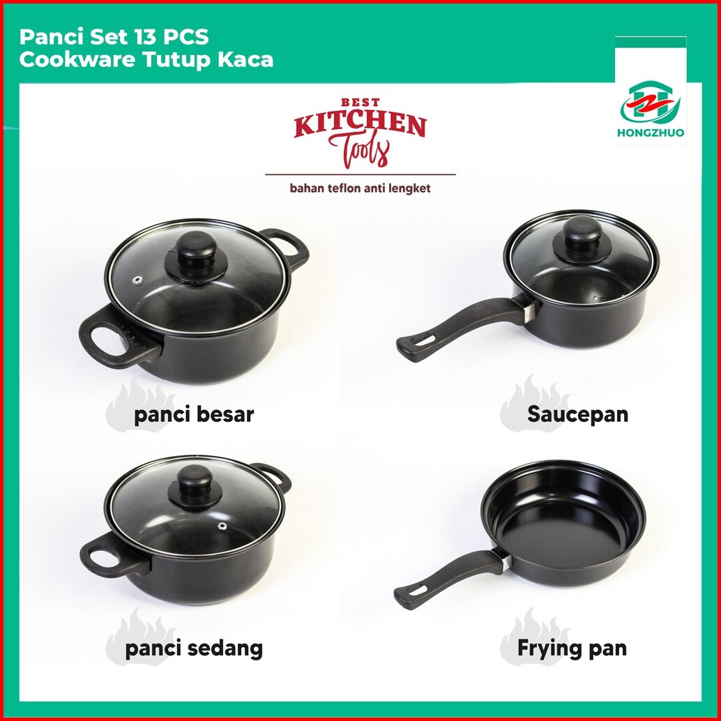 Hongzhuo Cookware Panci Set Wajan Penggorengan Spatula Set Isi 13pcs 1 Set Frypan Saucepan