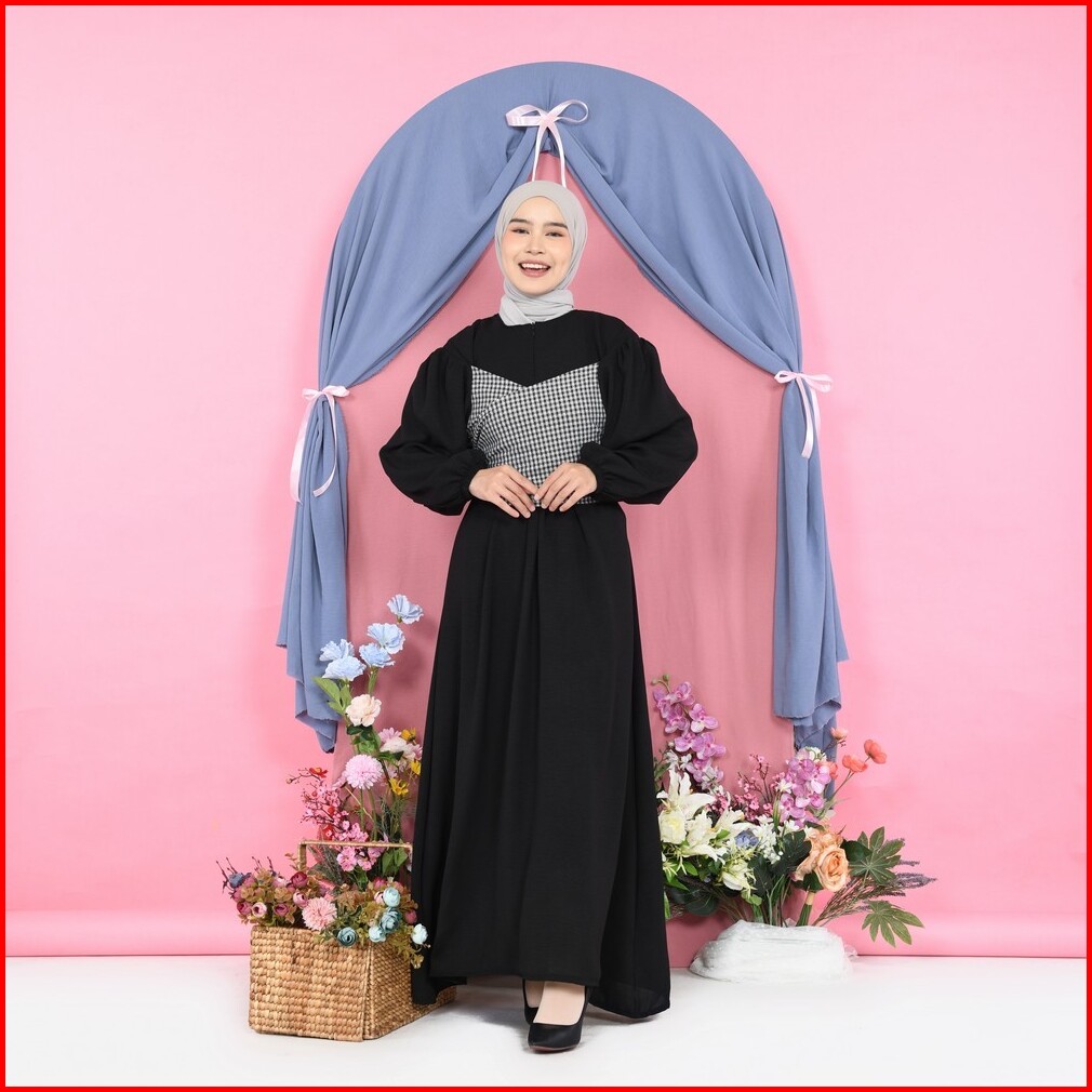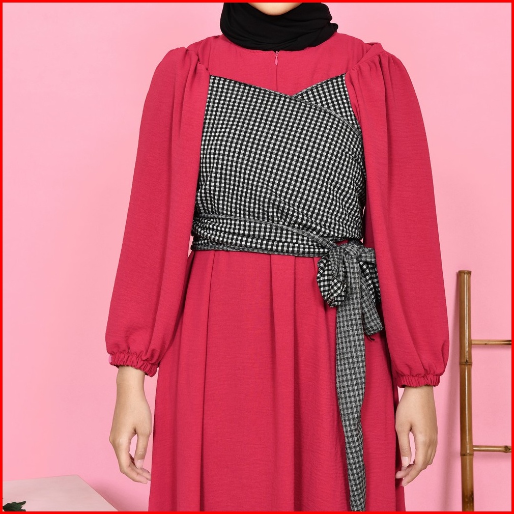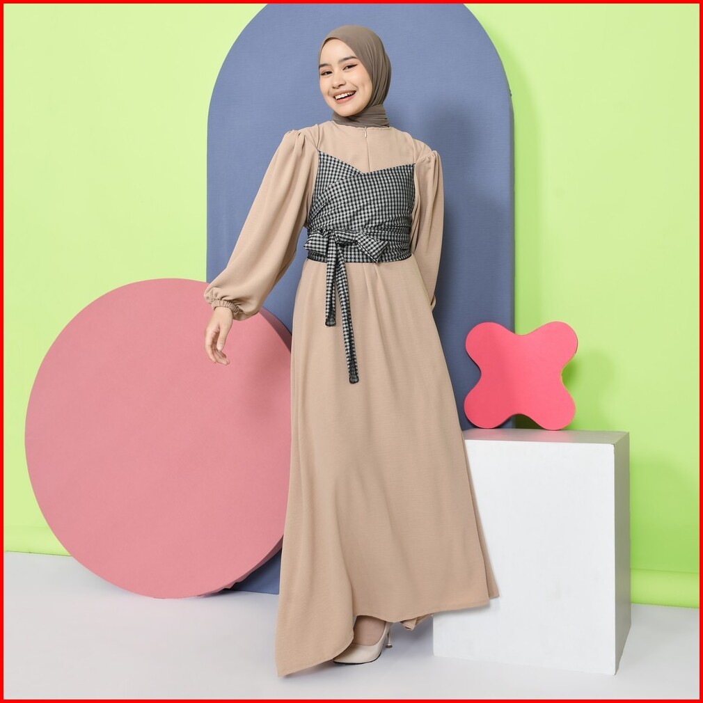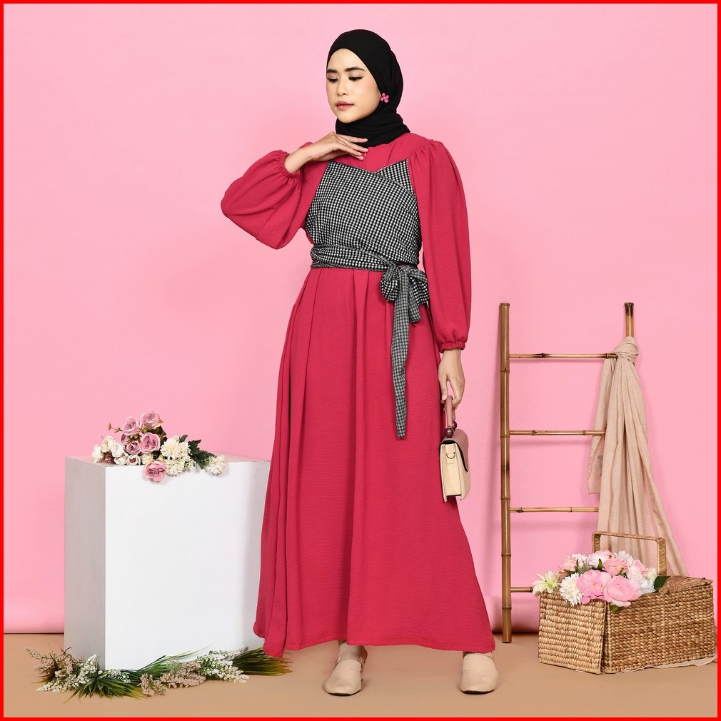 Mybamus Jane Maxidress Dress Lengan Panjang Kerut Dress Tali Pinggang Gamis Lebaran 2025