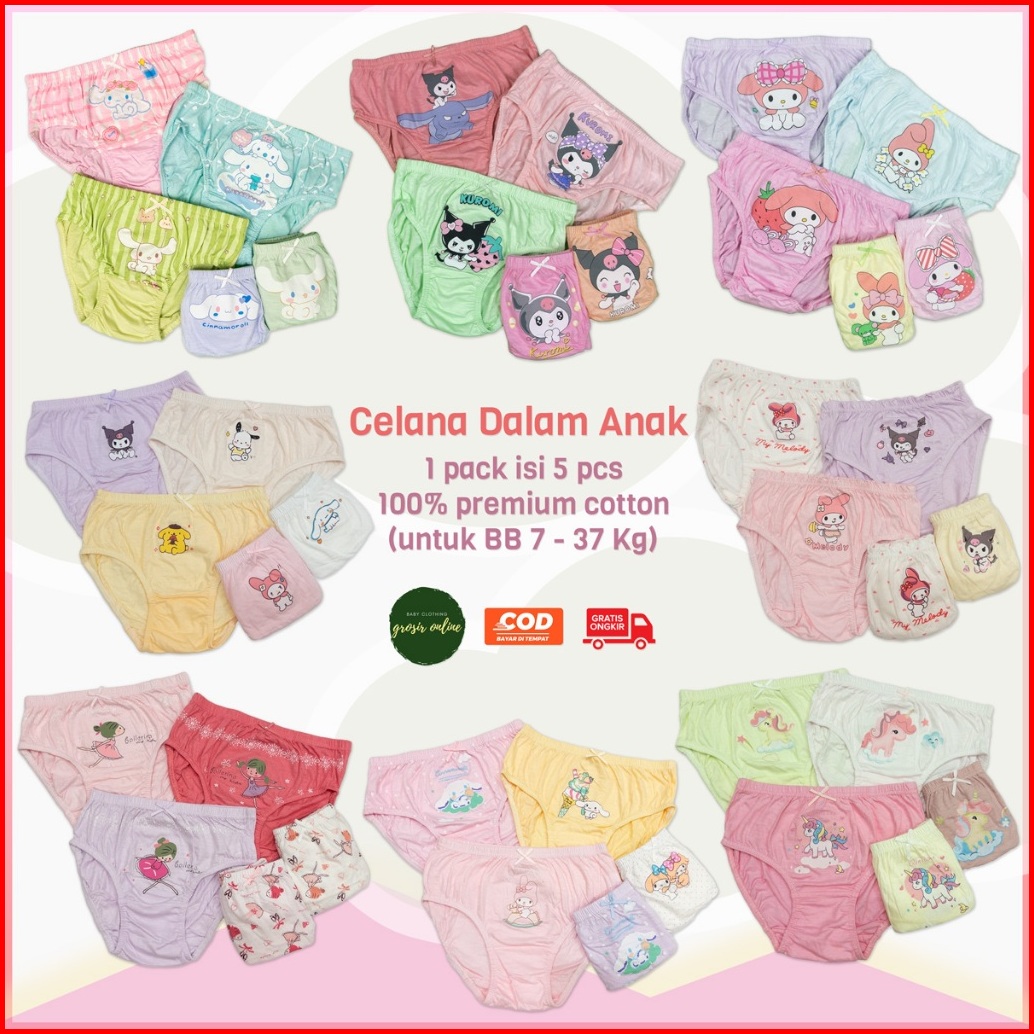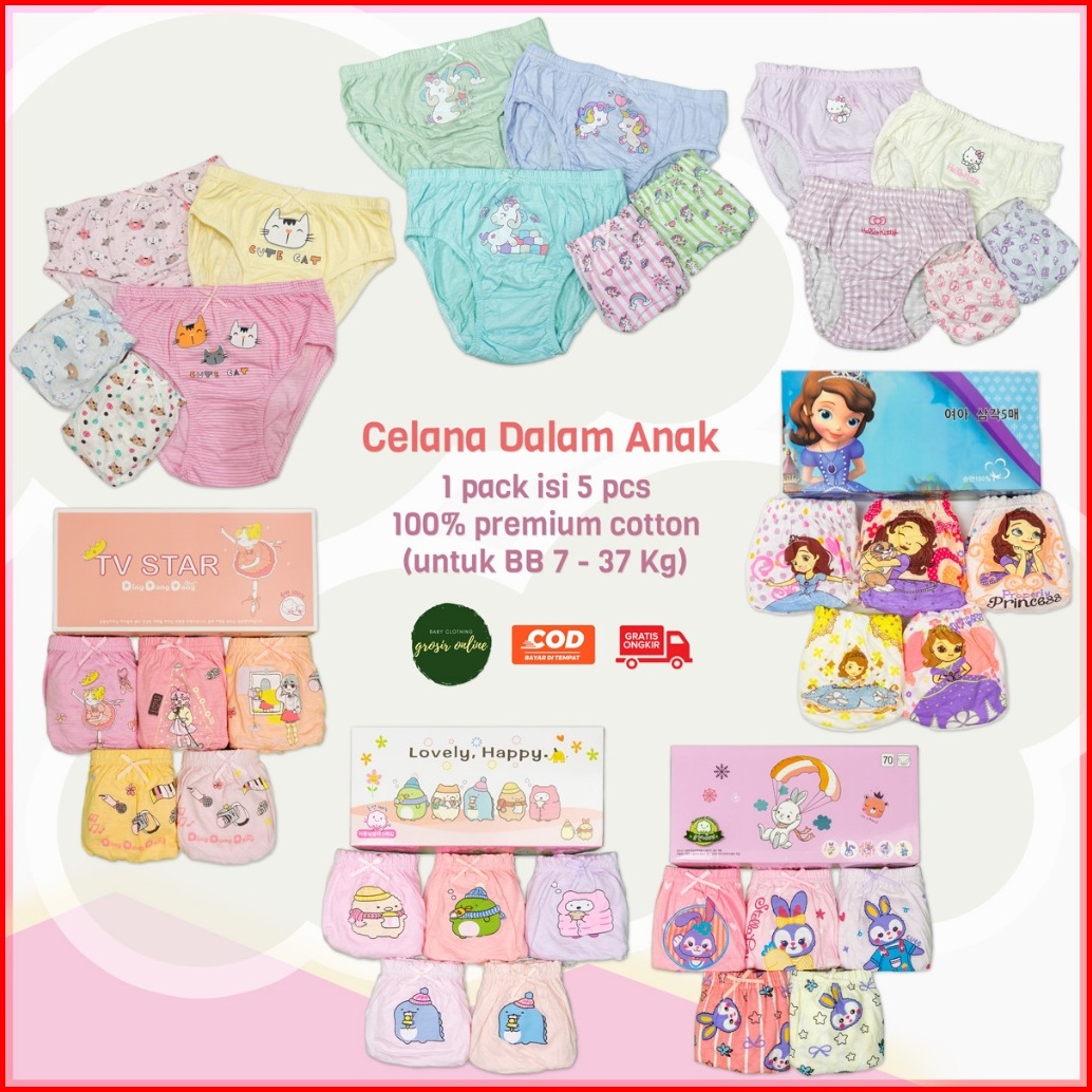 Celana Dalam Kolor Anak Perempuan Cewe Katun 2 - 13 Tahun Set Isi 5