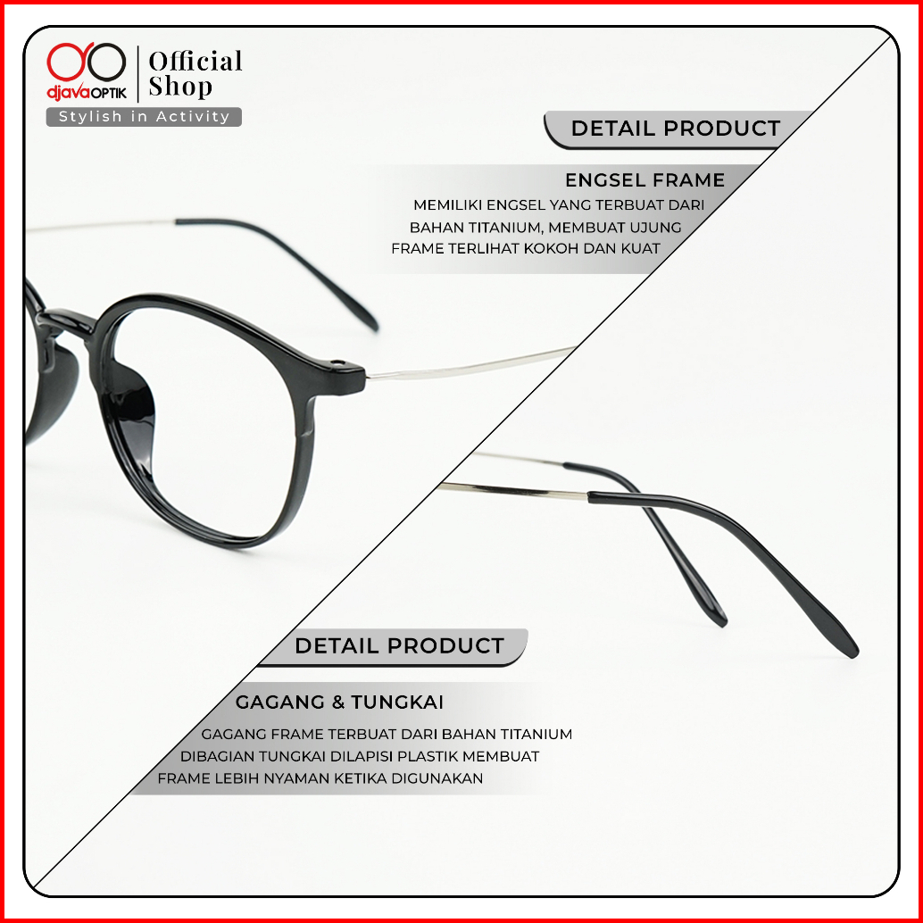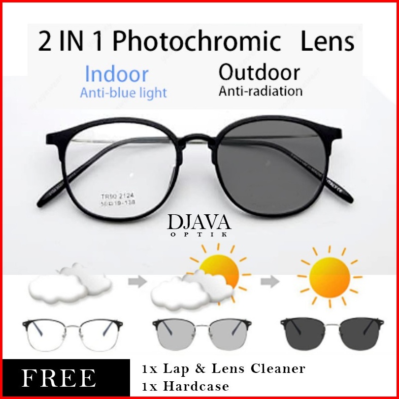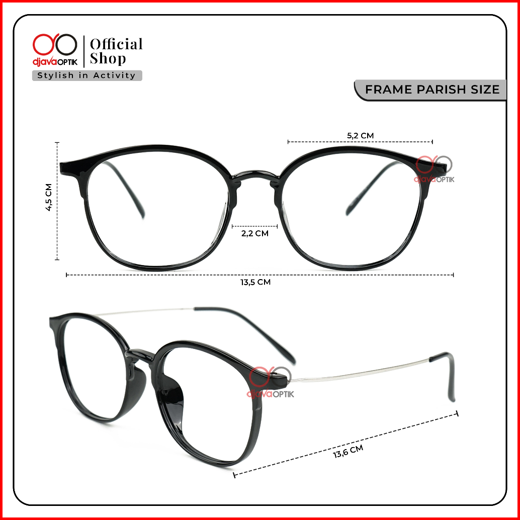 Djava Optik - Frame Parish - Paket Lensa Normal Photocromic Pabrik Photogrey No Minus Gelap Transparan