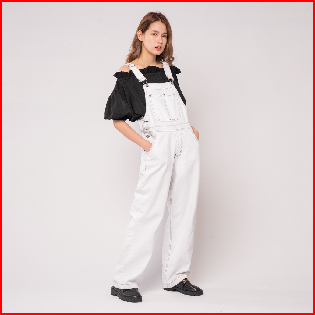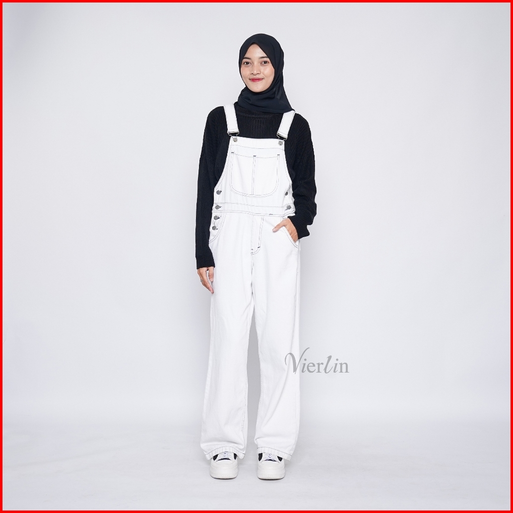 Vierlin - Jumpsuit Jeans Putih 8238 Nonstretch S-xxxl