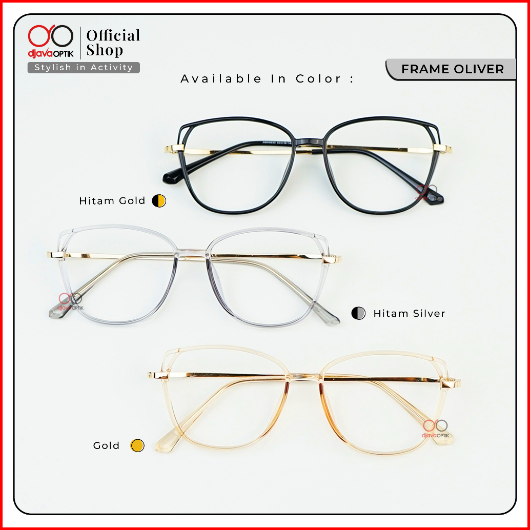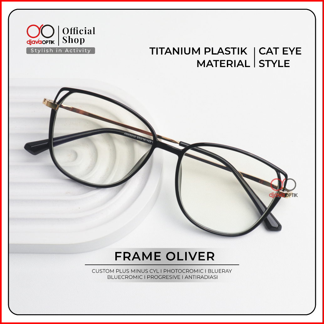 Djava Optik - Frame Oliver - Kacamata Minus Wanita Photocromic Blueray Bluecromic Antiuv Semi Cateye