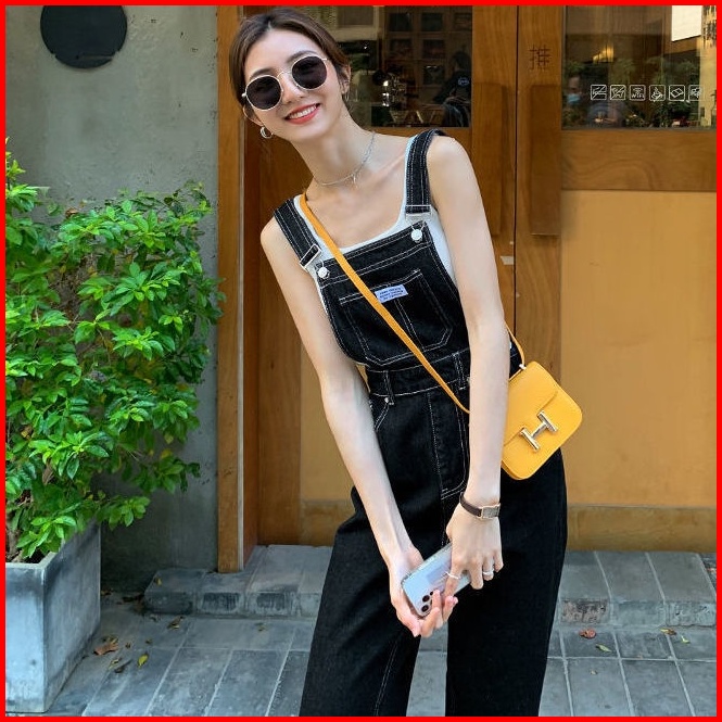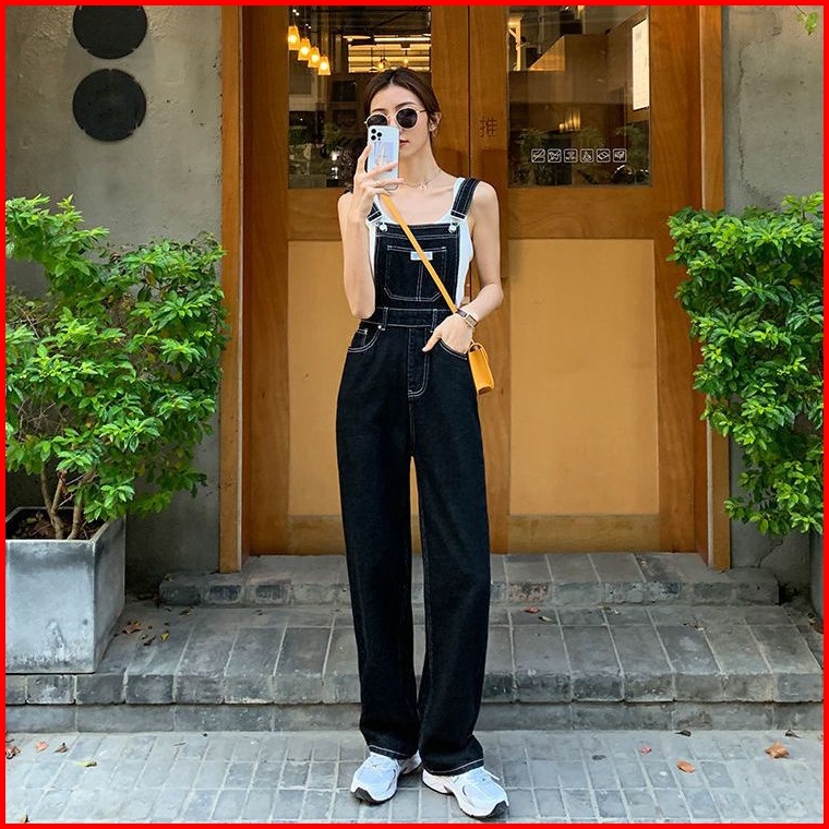 Jumpsuit Jeans Wanita Warna Hitam Yang Longgar