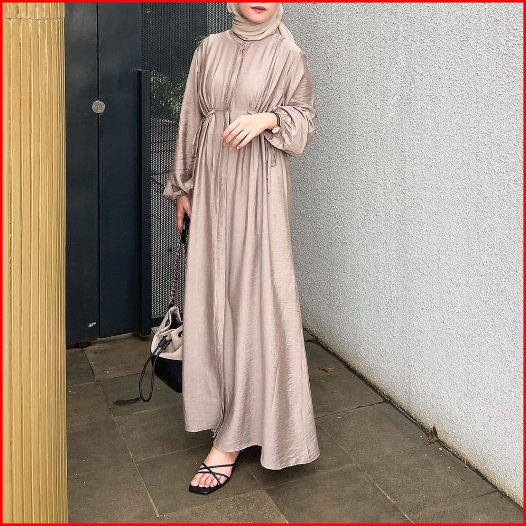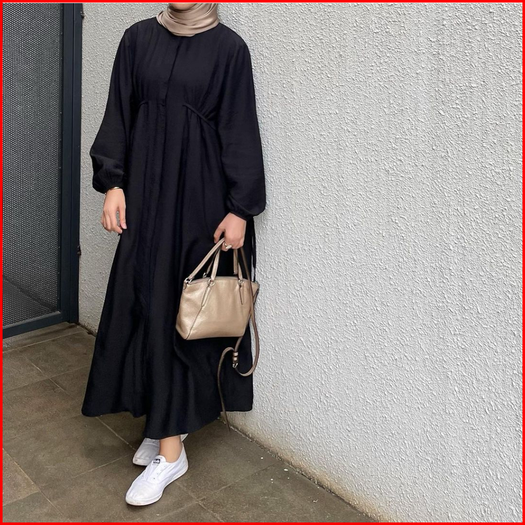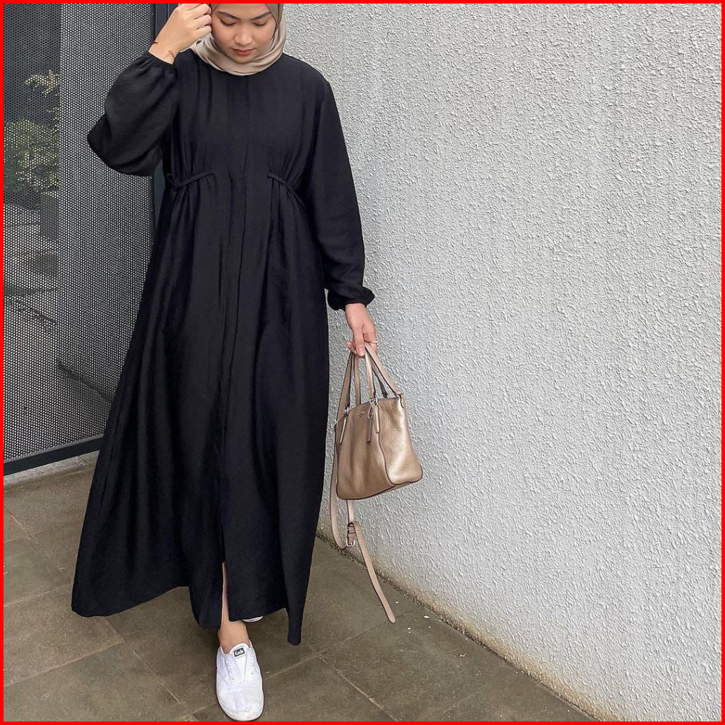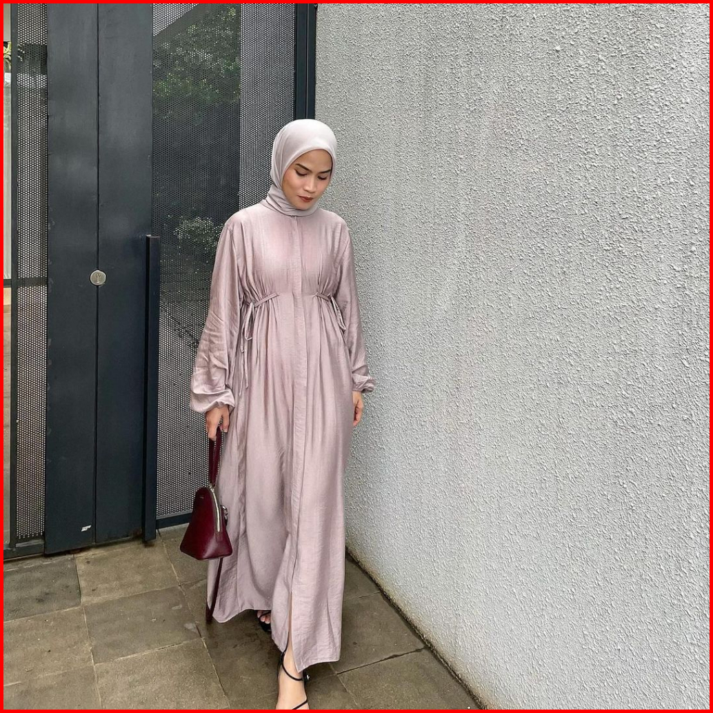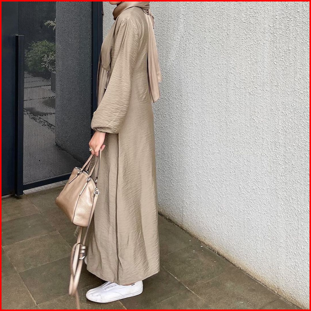 Gamis Midi Dress Polos Polo Linen Tali Pinggang Hazzel