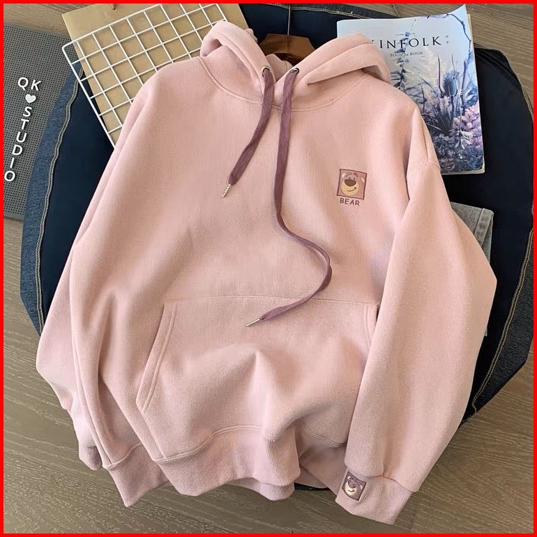 Femes Bear Bordir Sweater Outerwear Lotso Hoodie Ootd Wanita Korean Style Premium