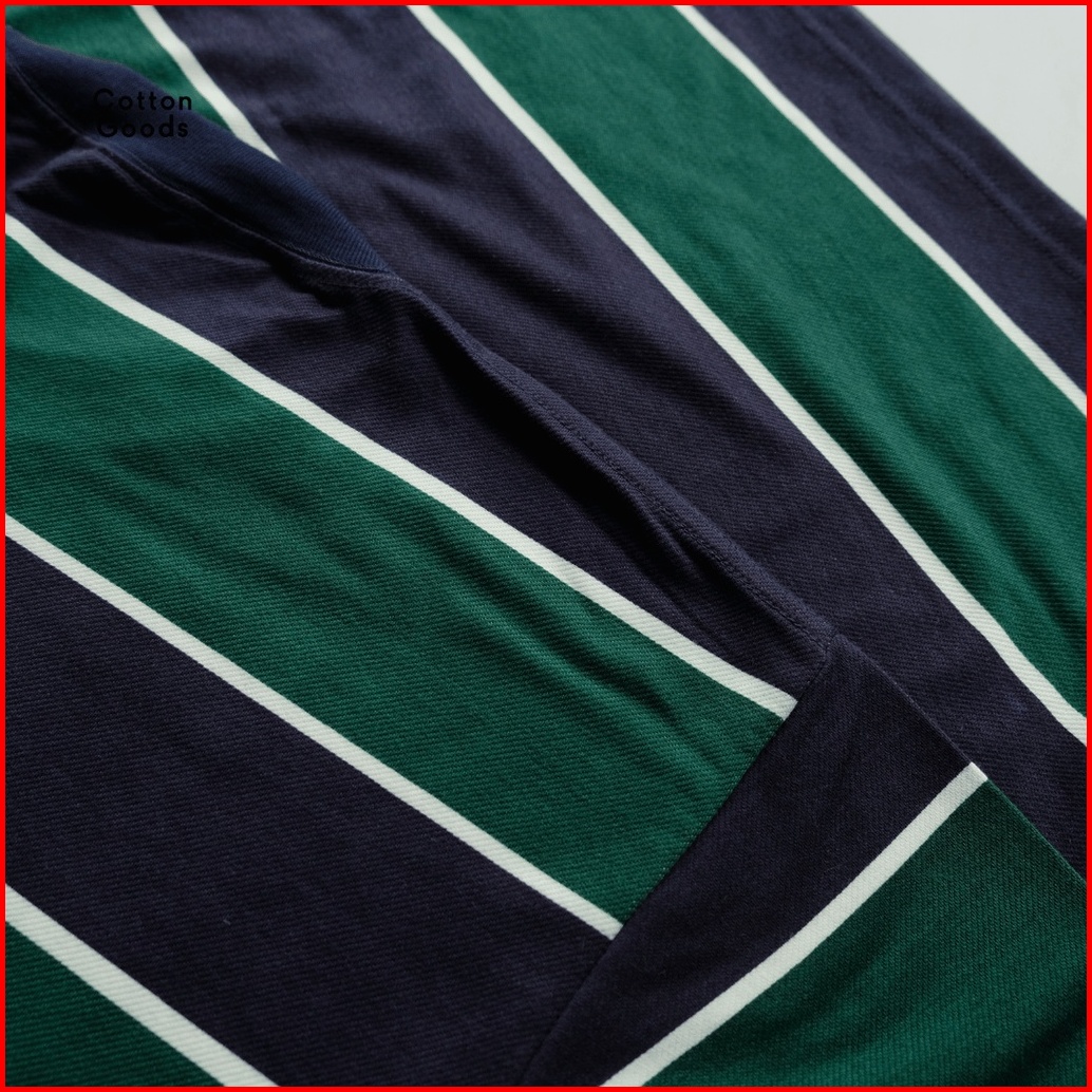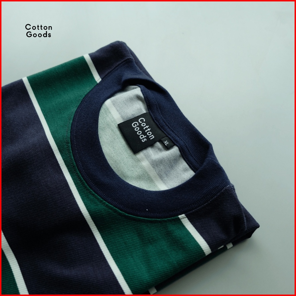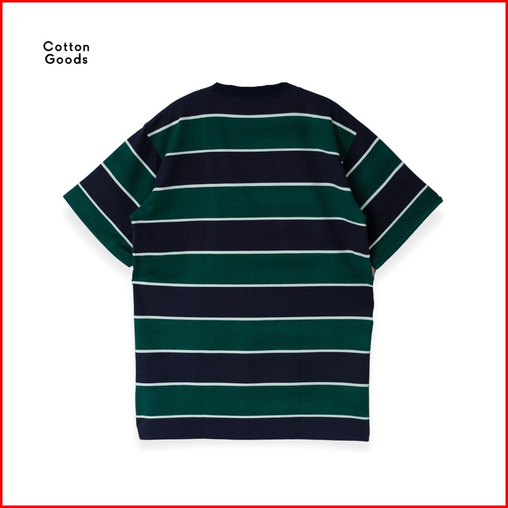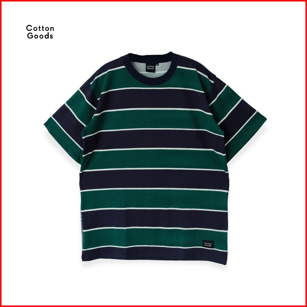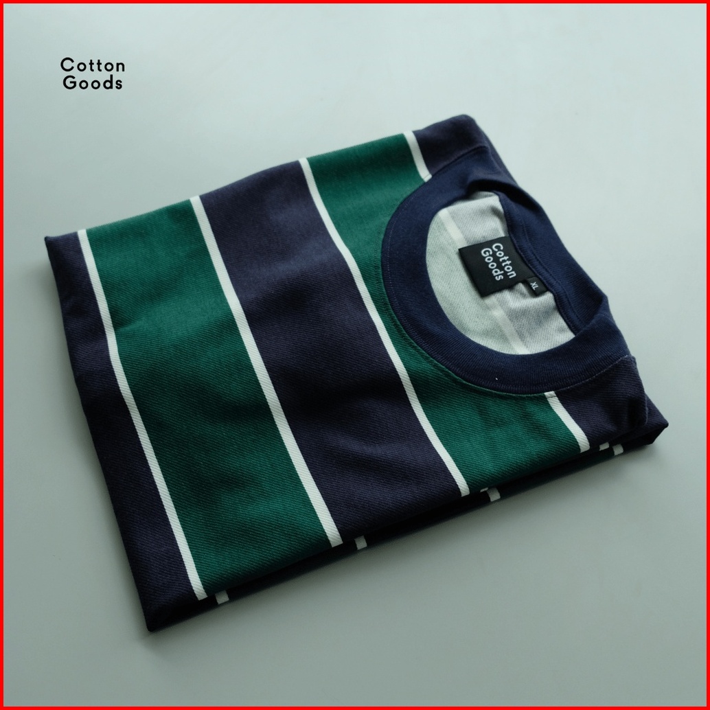 Cotton Goods Kaos Oversized Striped Twill Spandex Bence Navy Green White Tees