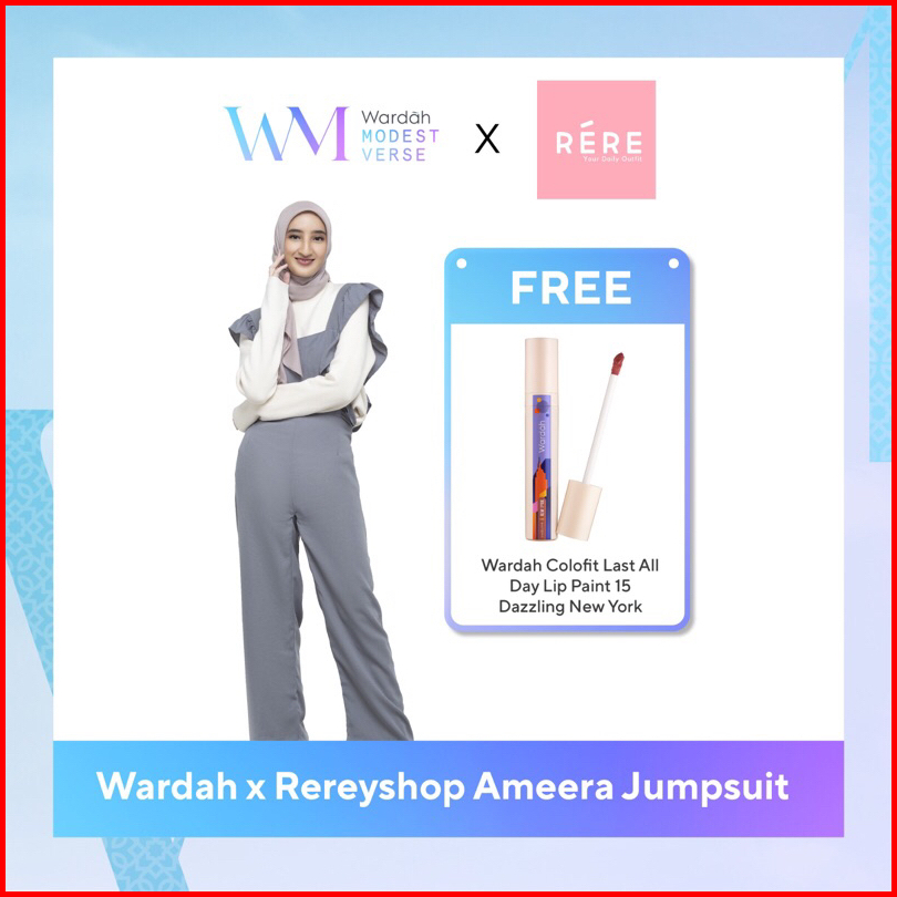 Rereyshop - Ameera Jumpsuit Wanita Tanpa Lengan Korean Style Bahan Royal Twist Premium Get Promo Bundling Lip Paint