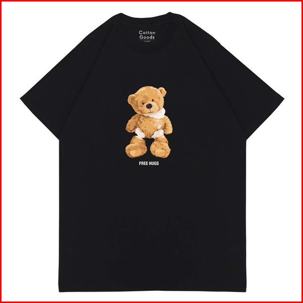 Cotton Goods Kaos Grafis Free Hugs Black Graphic Oversized Tees