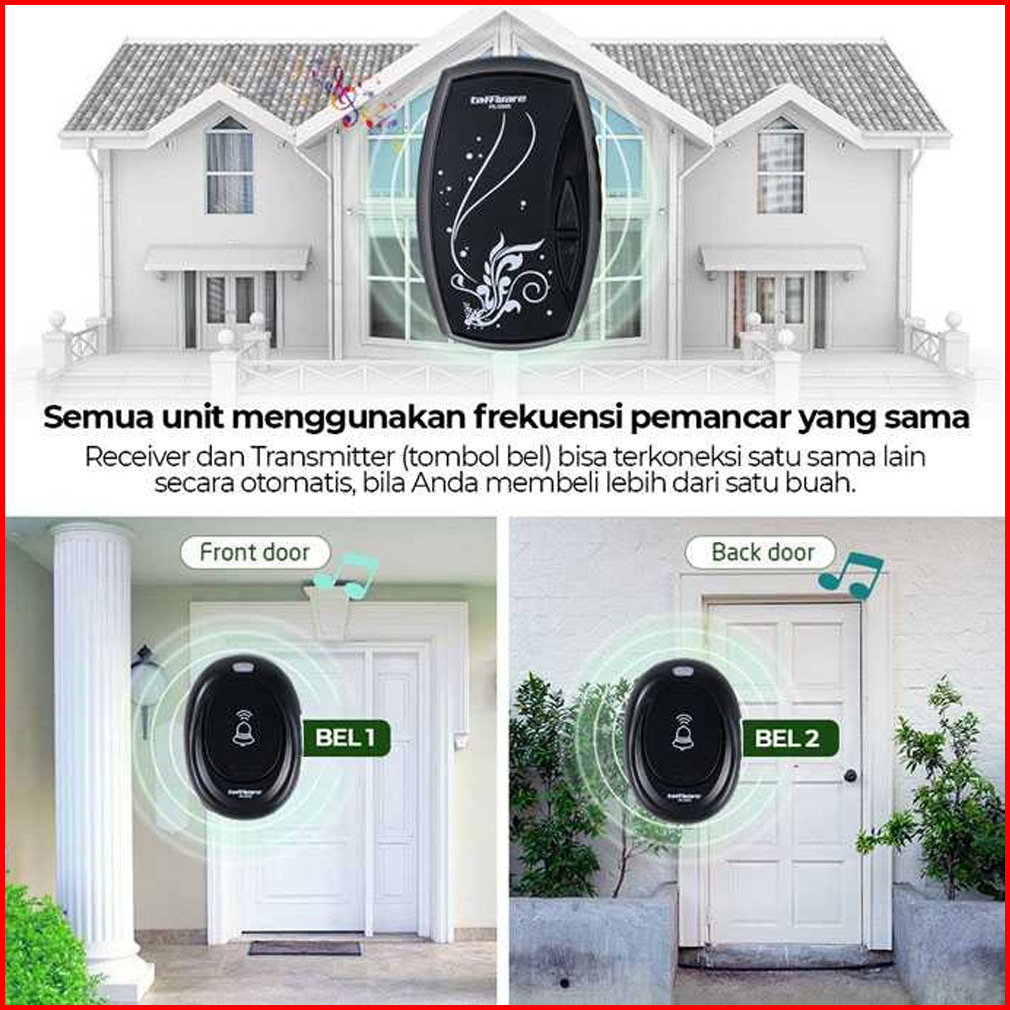 Bel Bell Pintu Rumah Kantor Wireless Tanpa Kabel Nirkabel Waterproof Smart Murah Taffware - Fk-d009