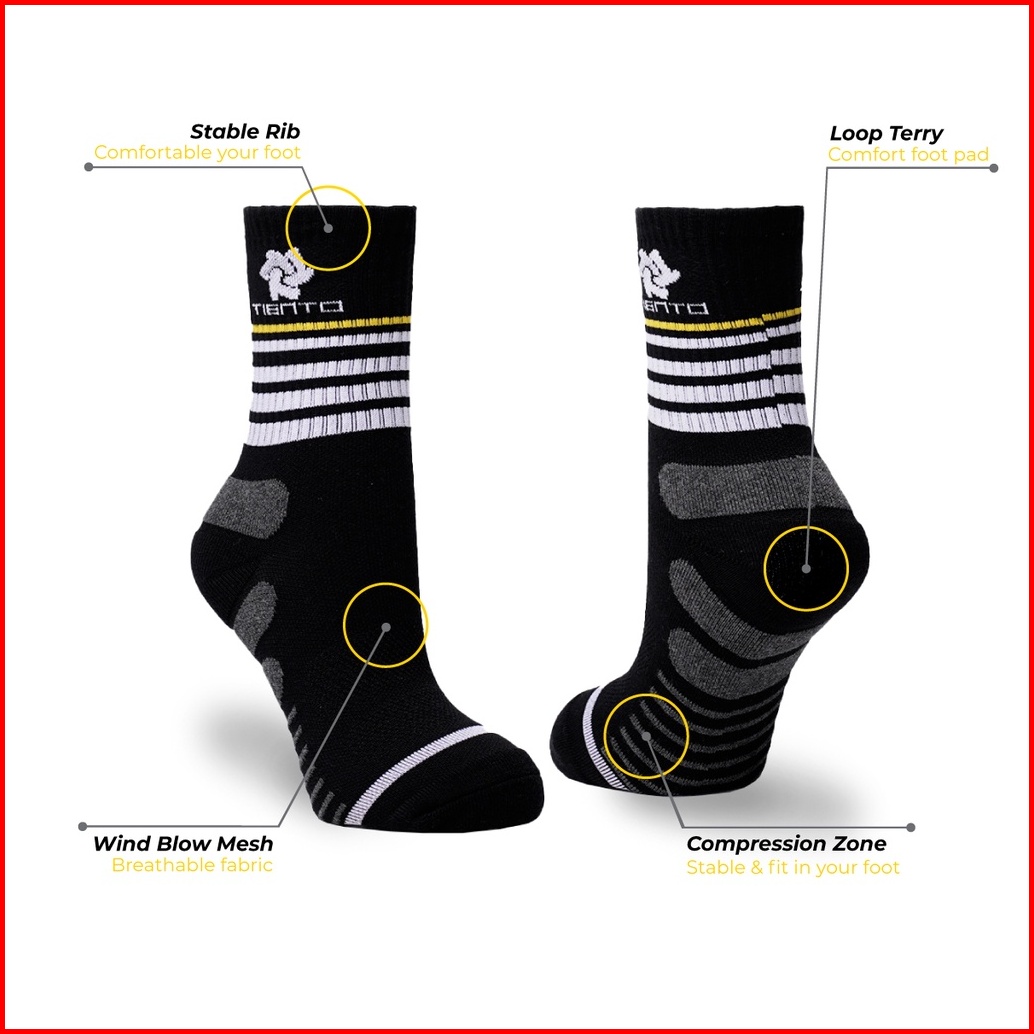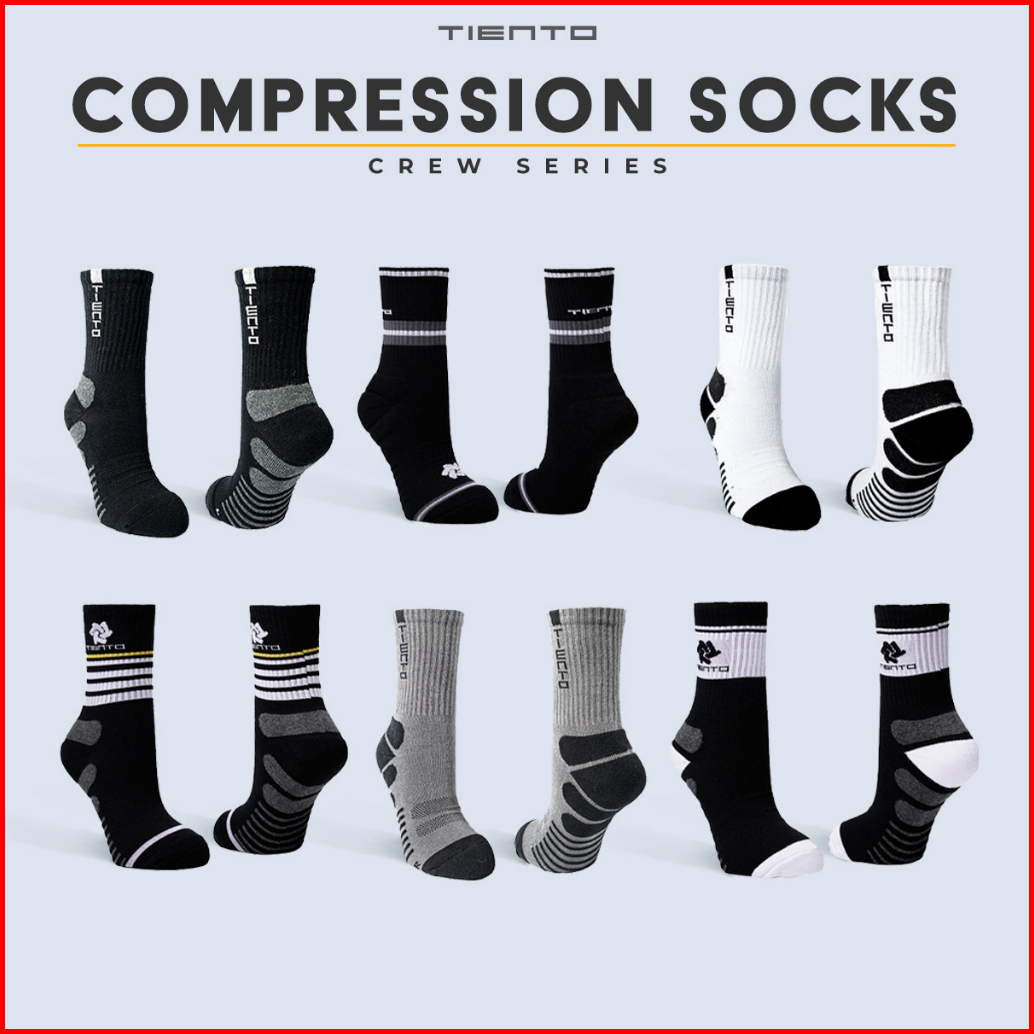Tiento Compression Socks Kaos Kaki Ketat Olahraga Crew Typotype Crew Anti Bacterial Technology