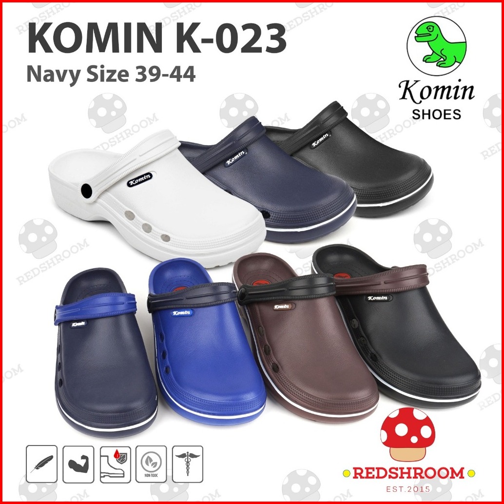 Sandal Selop Komin K 023 Putih Hitam Biru Navy Coklat Fashion Karet Lokal Nyaman Ringan Anti Air Slip Apd Perawat Dokter