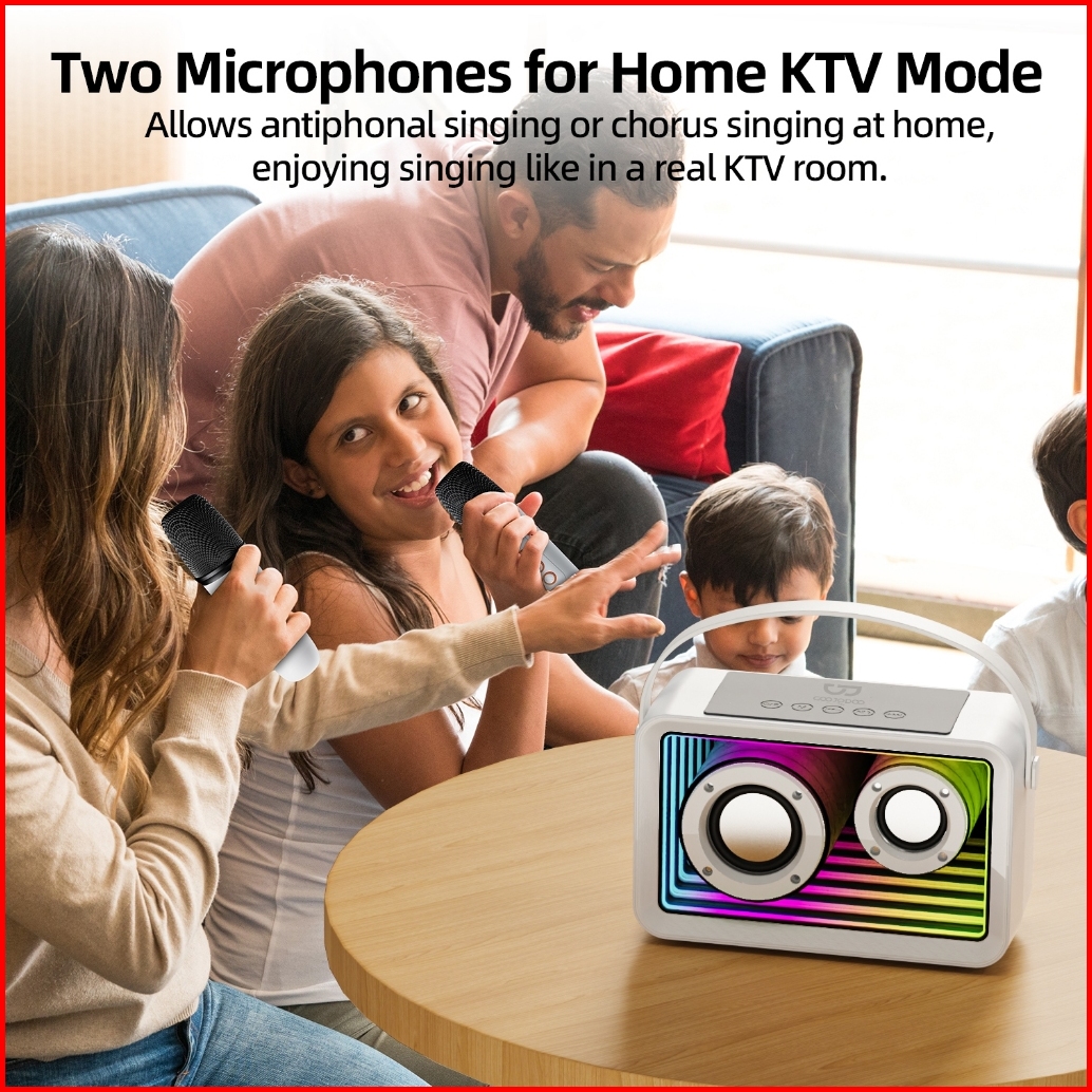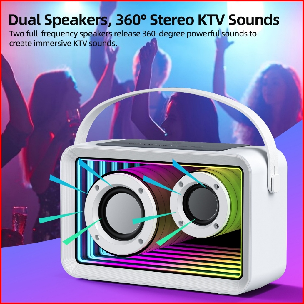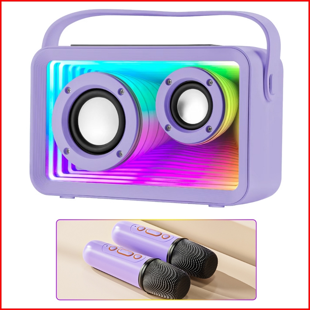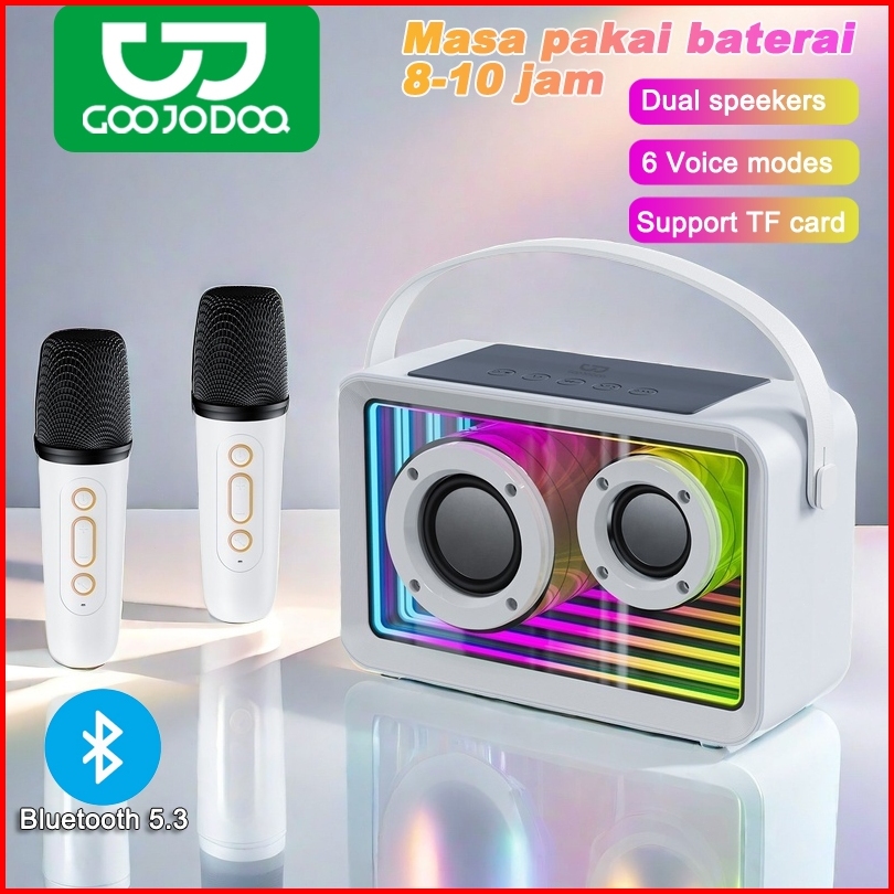 Goojodoq New Ab4082 Speaker Bluetooth 2mic Set Karaoke Speaker Layered Mirror Led Light Ktv Wireless Portabel Luar Ruang