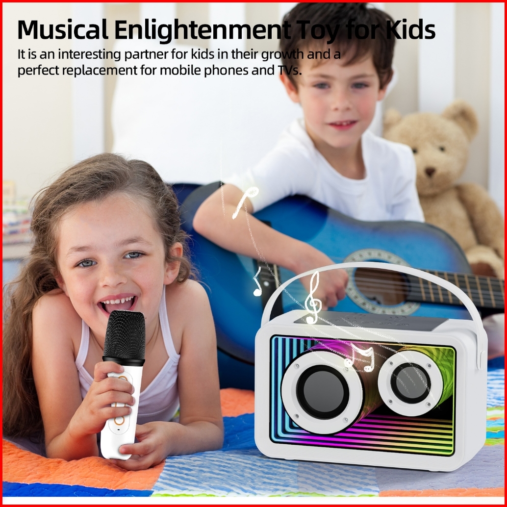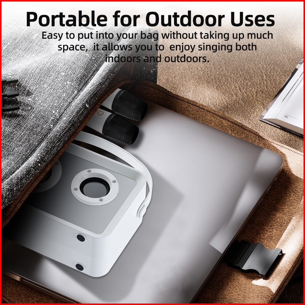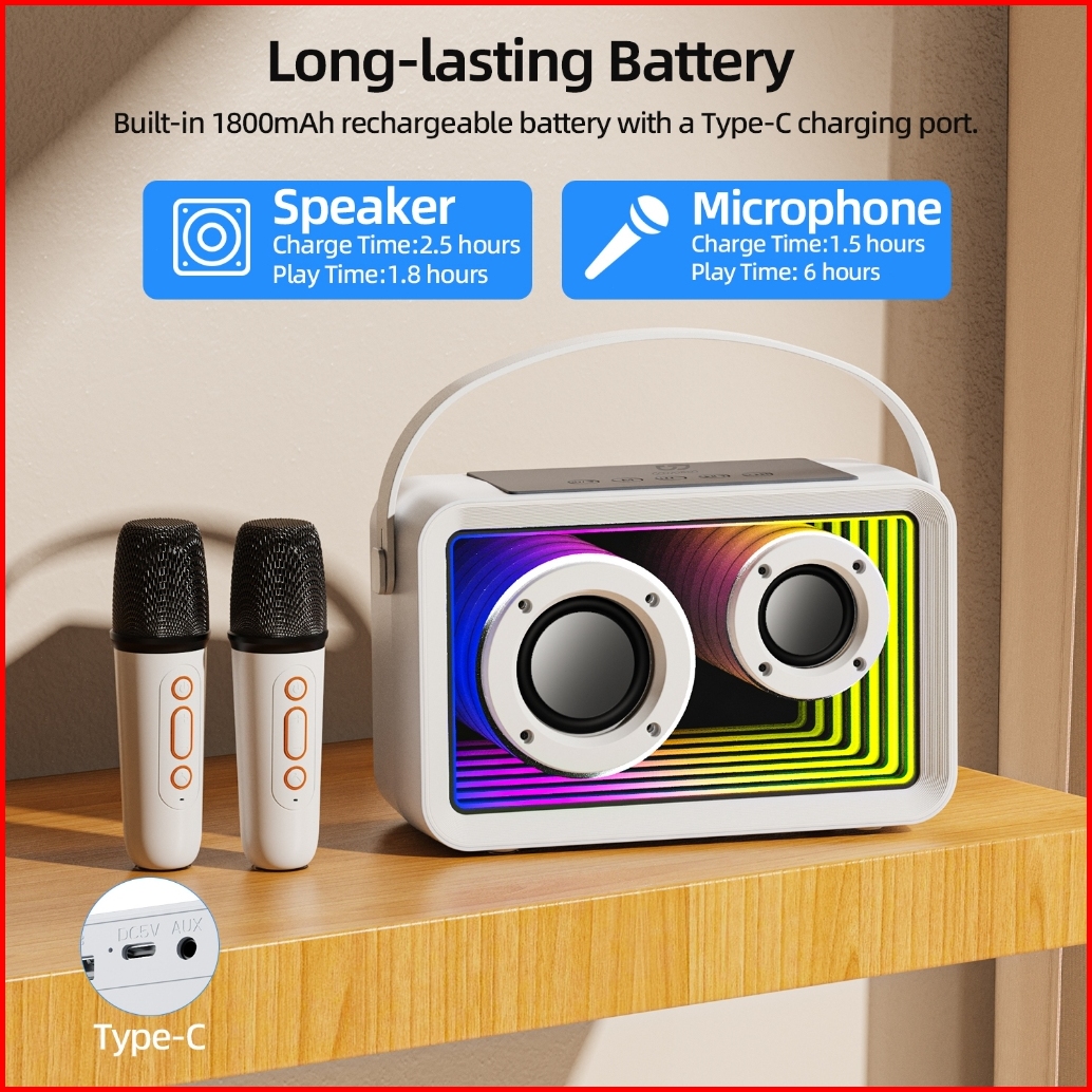 Goojodoq New Ab4082 Speaker Bluetooth 2mic Set Karaoke Speaker Layered Mirror Led Light Ktv Wireless Portabel Luar Ruang