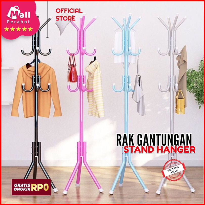 Mall Perabot Stand Hanger Coat Rack Gantungan Berdiri Topi Baju Tas Gantung Jacket Serbaguna Multifungsi