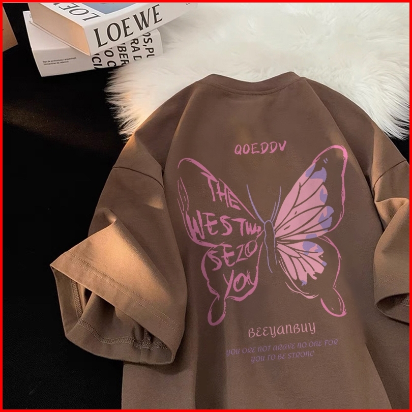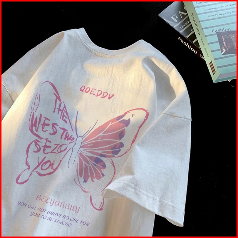 Forteid T-shirt Short Sleeve Baju Kaos Oversize Baju Korean Women S T-shirt Atasan Wanita Terbaru Pola Kupu-kupu Cotton