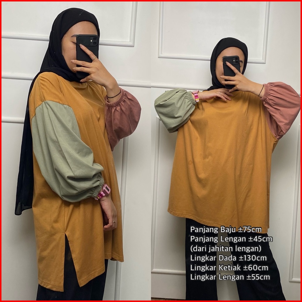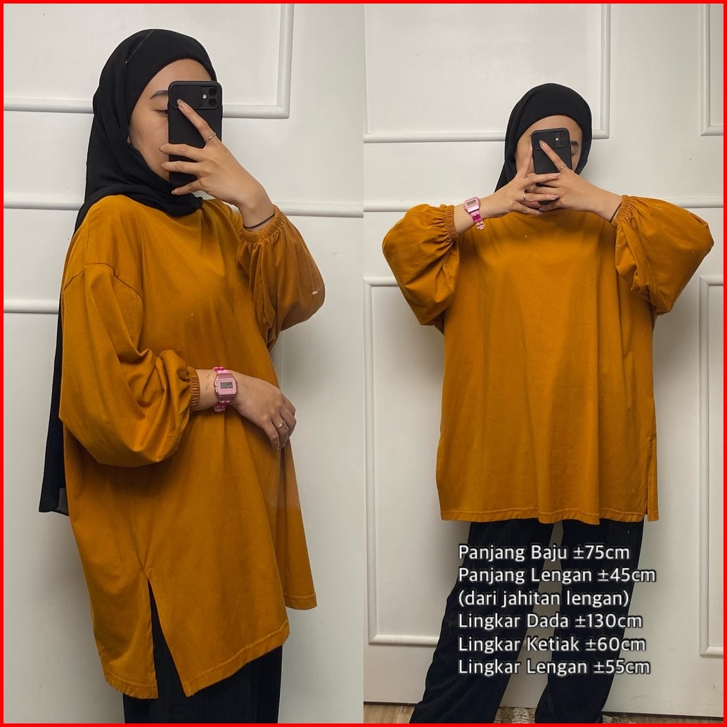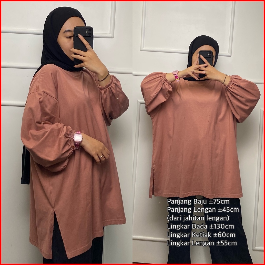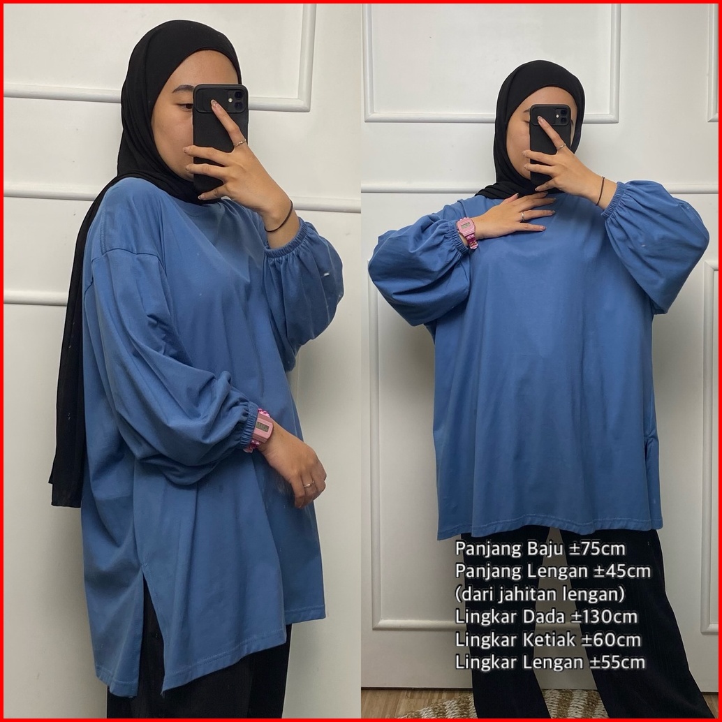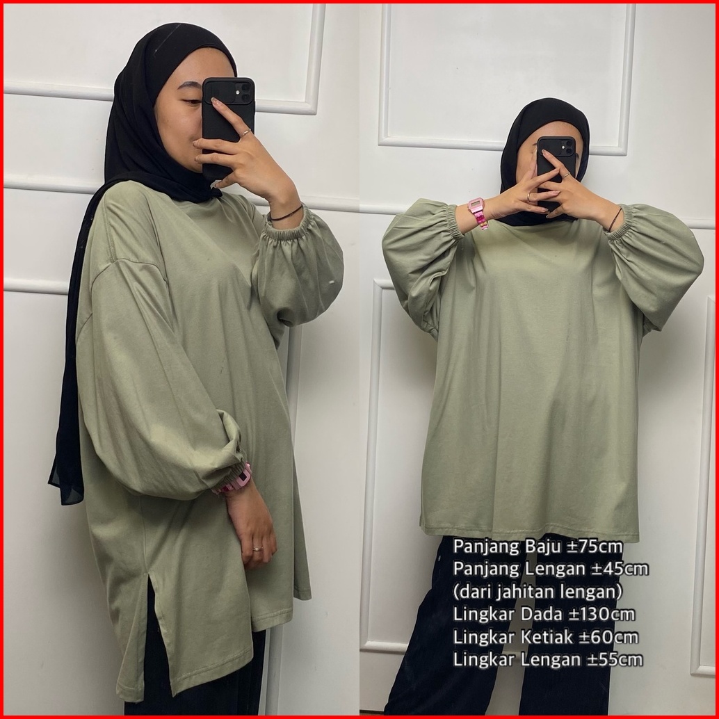 Kaos Wanita Lengan Panjang Blouse Lengan Balon Oversize Atasan Menyusui