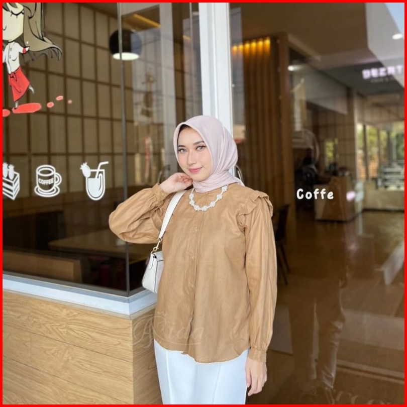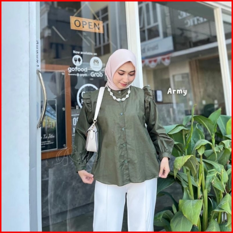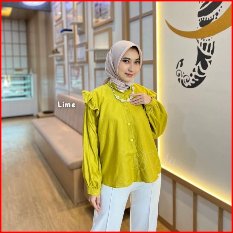 Yurim Blouse Ruffle - Atasan Wanita - Kemeja Linen Basic Lengan Panjang