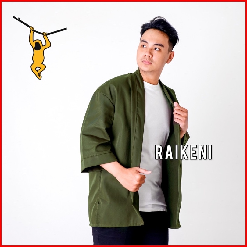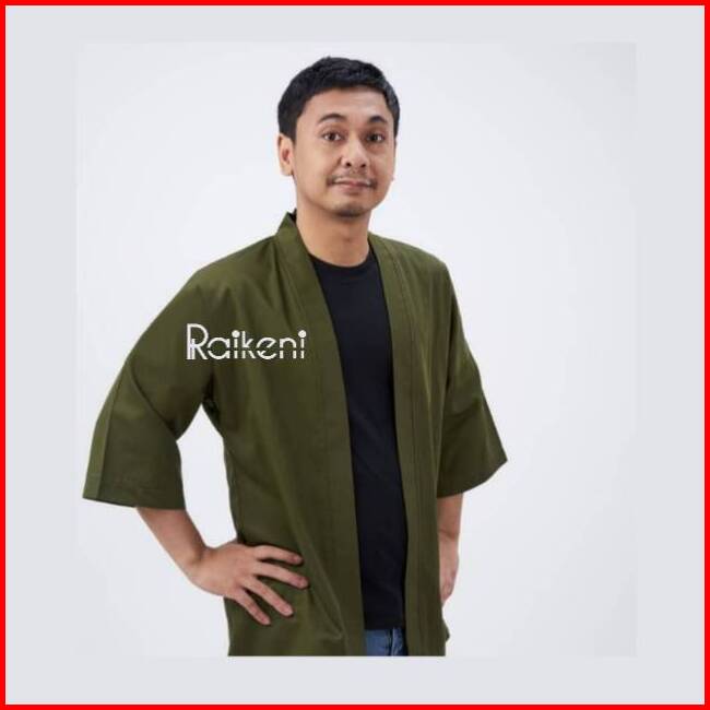 Raikeni Kimono Uno Cardigan Unisex Outerwear Pria Jepang Kardigan Pria Hijau Army