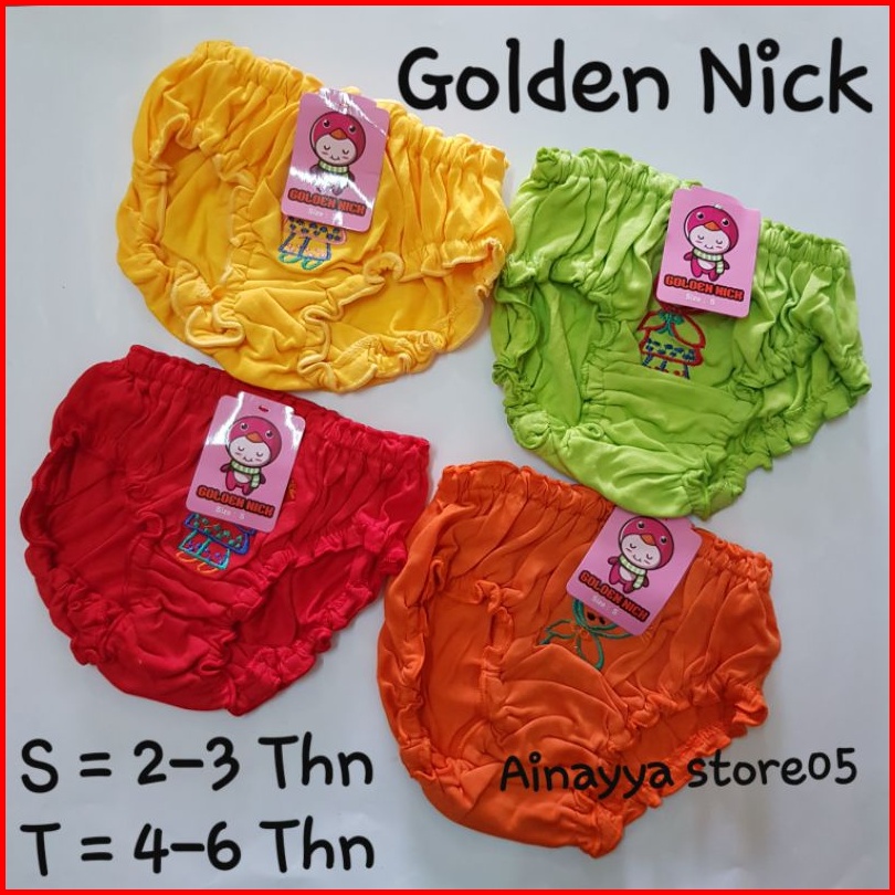 6pcs Celana Dalam Anak Perempuan Golden Nick Keriting Seri Warna