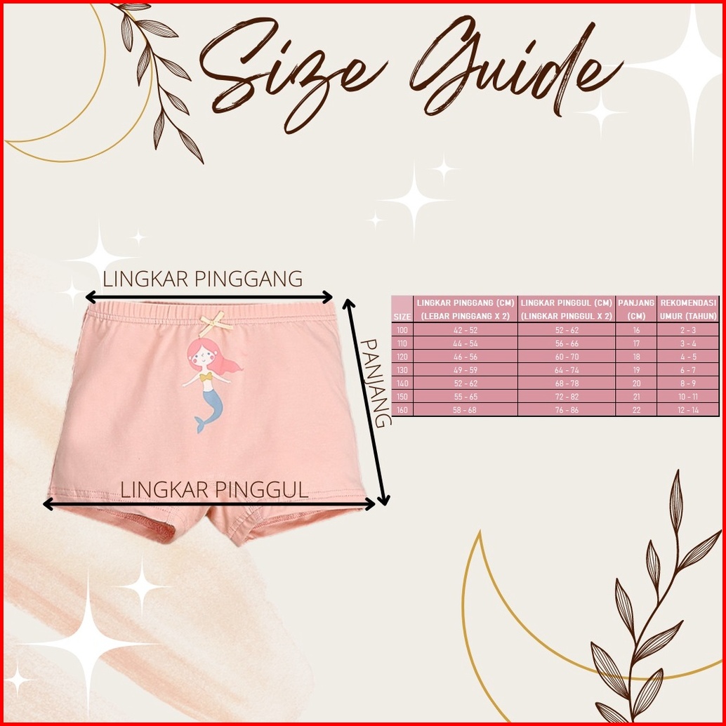 Celana Dalam Anak Boxer Cewek Perempuan 4 Pcs 2-14 Tahun Katun