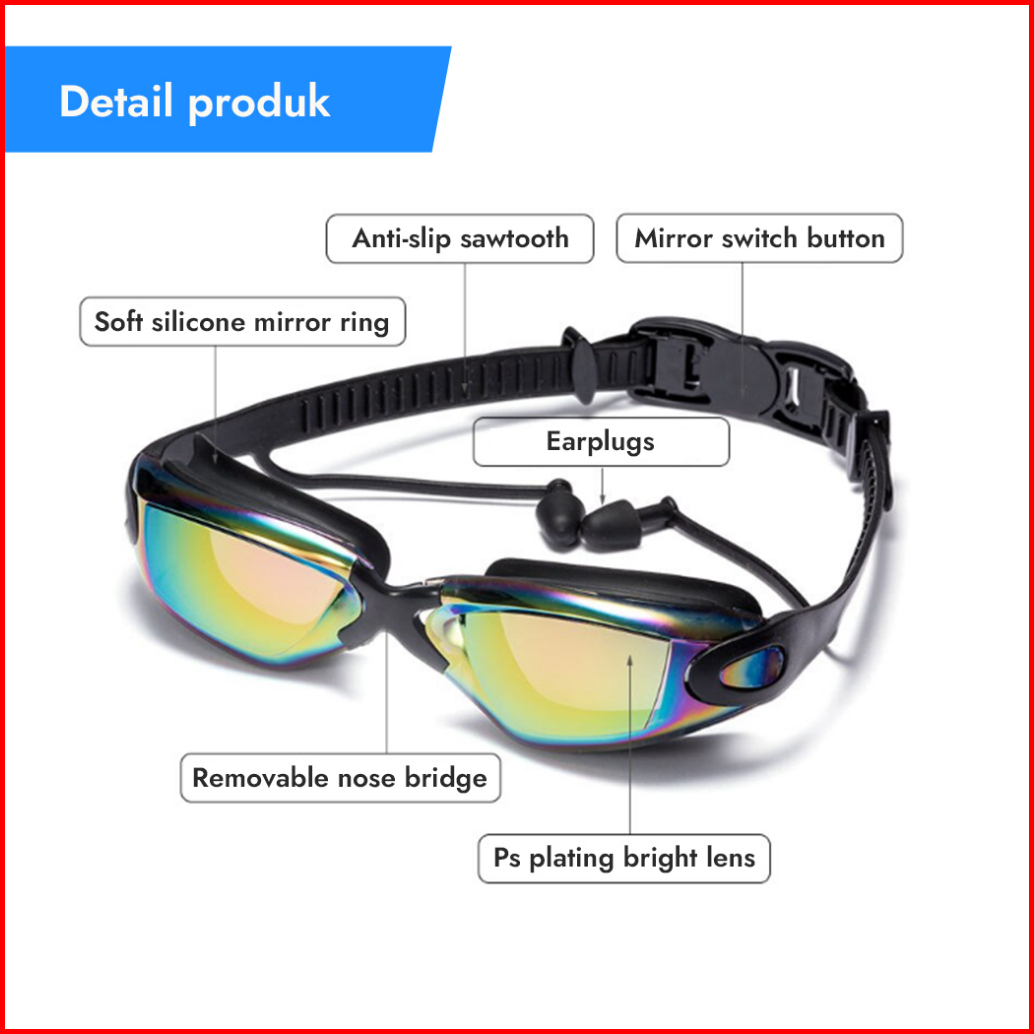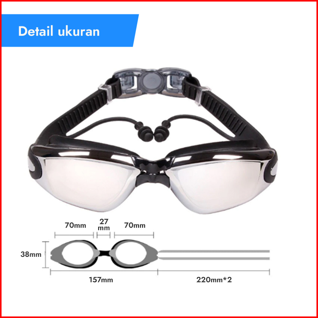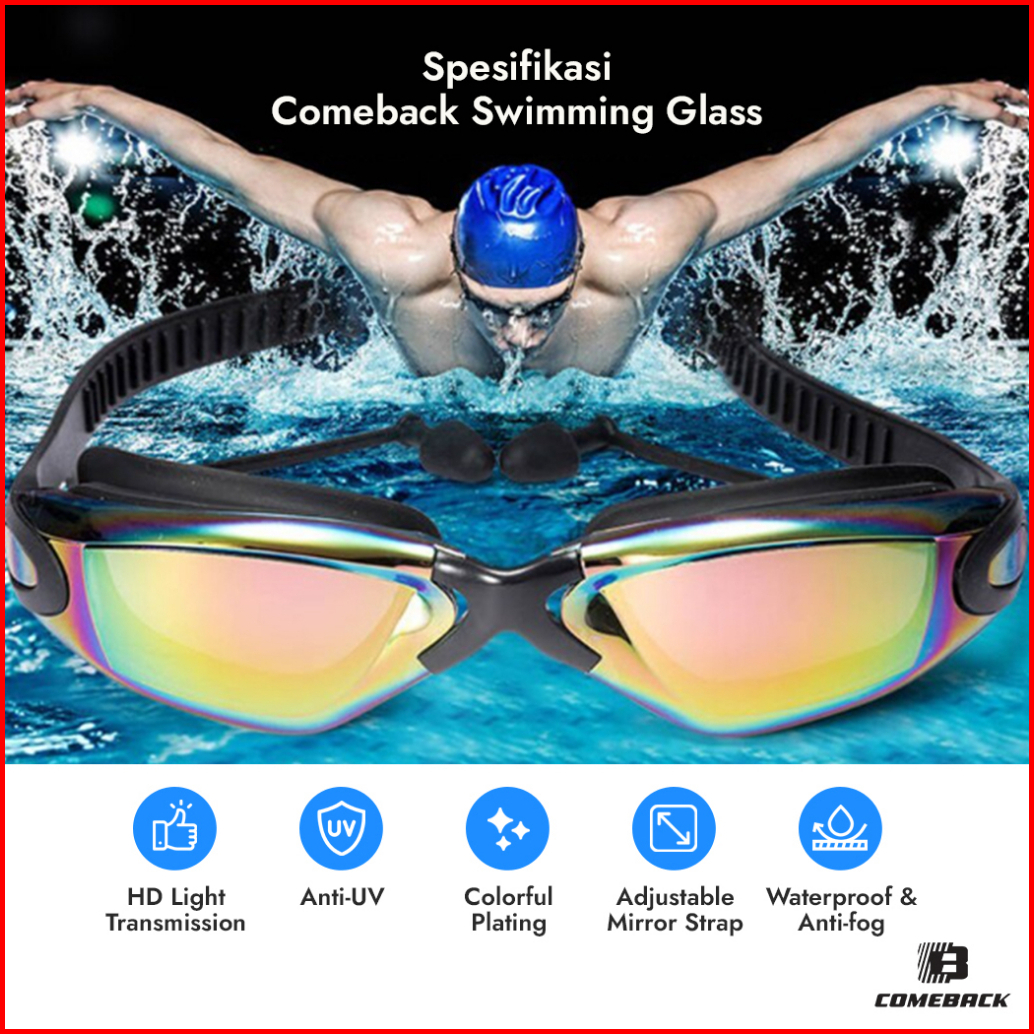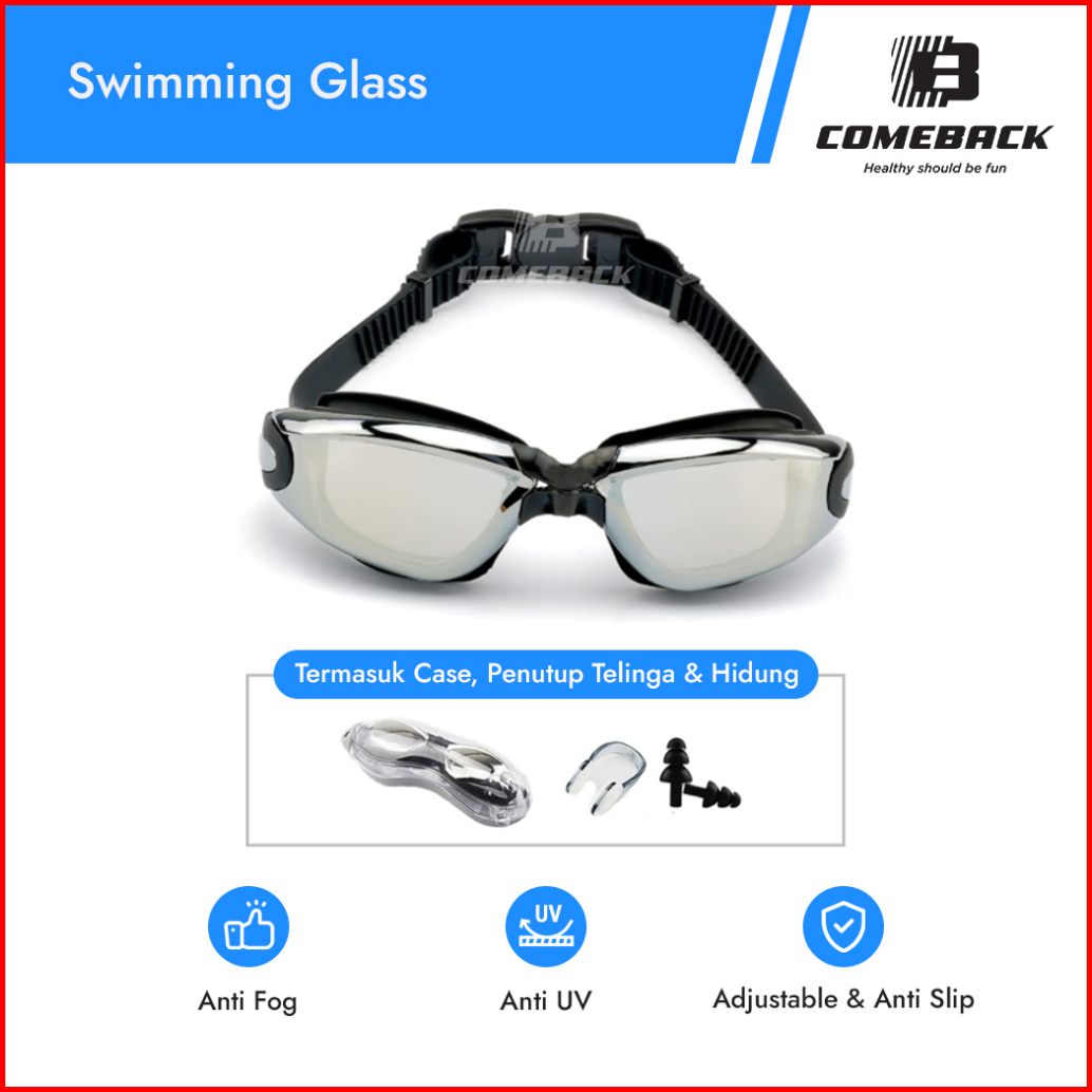Comeback Swimming Glass Kacamata Renang Anti Fog Anti Embun Anti Uv Adjustable Anti Slip Termasuk Case Penutup Telinga H