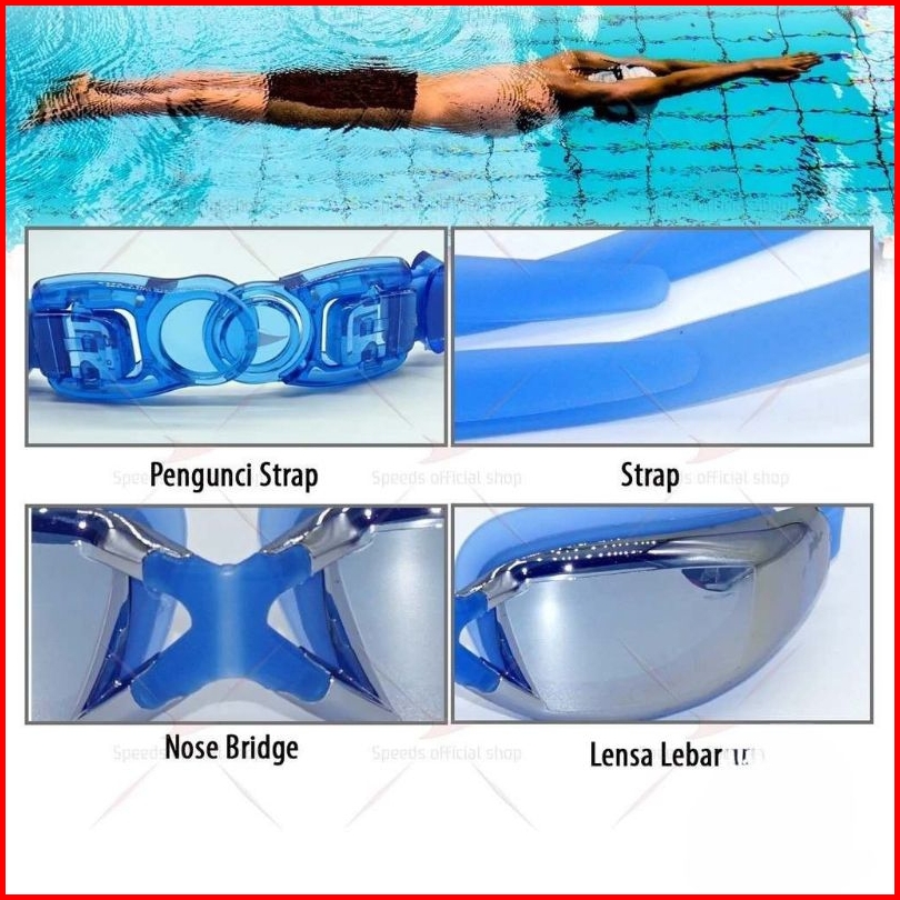 Kacamata Renang Dewasa Lensa Mirror Anti Fog Uv Protect Gratis Box