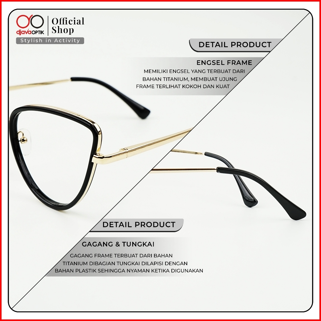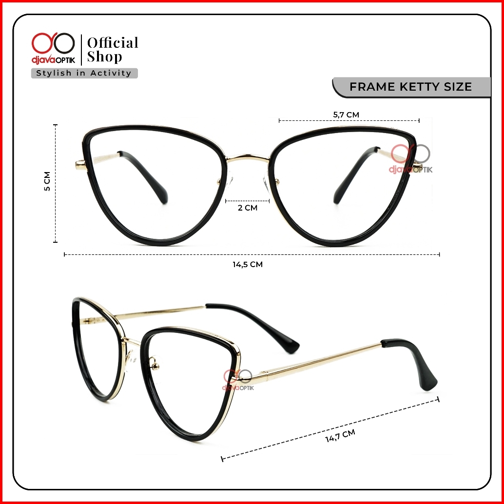 Djava Optik - Frame Ketty - Kacamata Photocromic Normal Pabrik No Minus Model Cateye