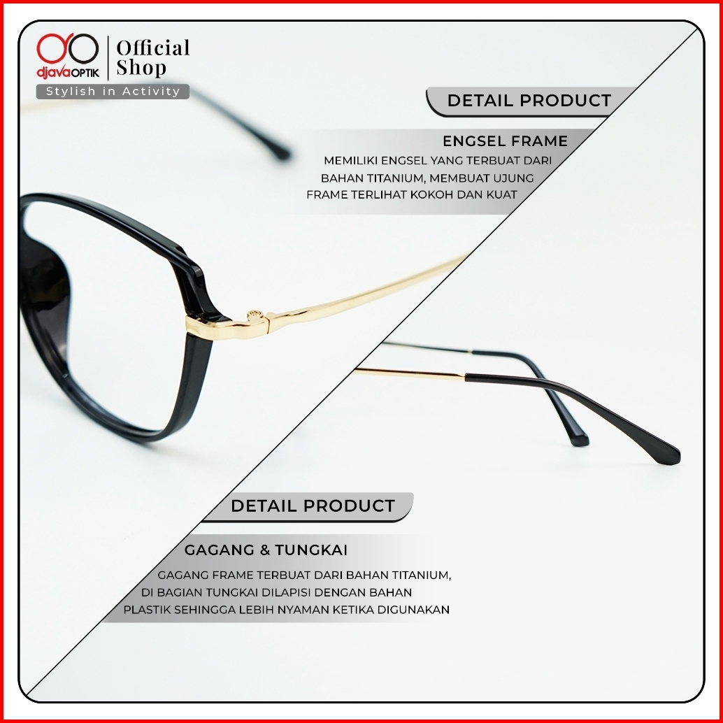 Djava Optik - Frame Oliver - Kacamata Normal Photocromic Pabrik Model Semi Cat Eye
