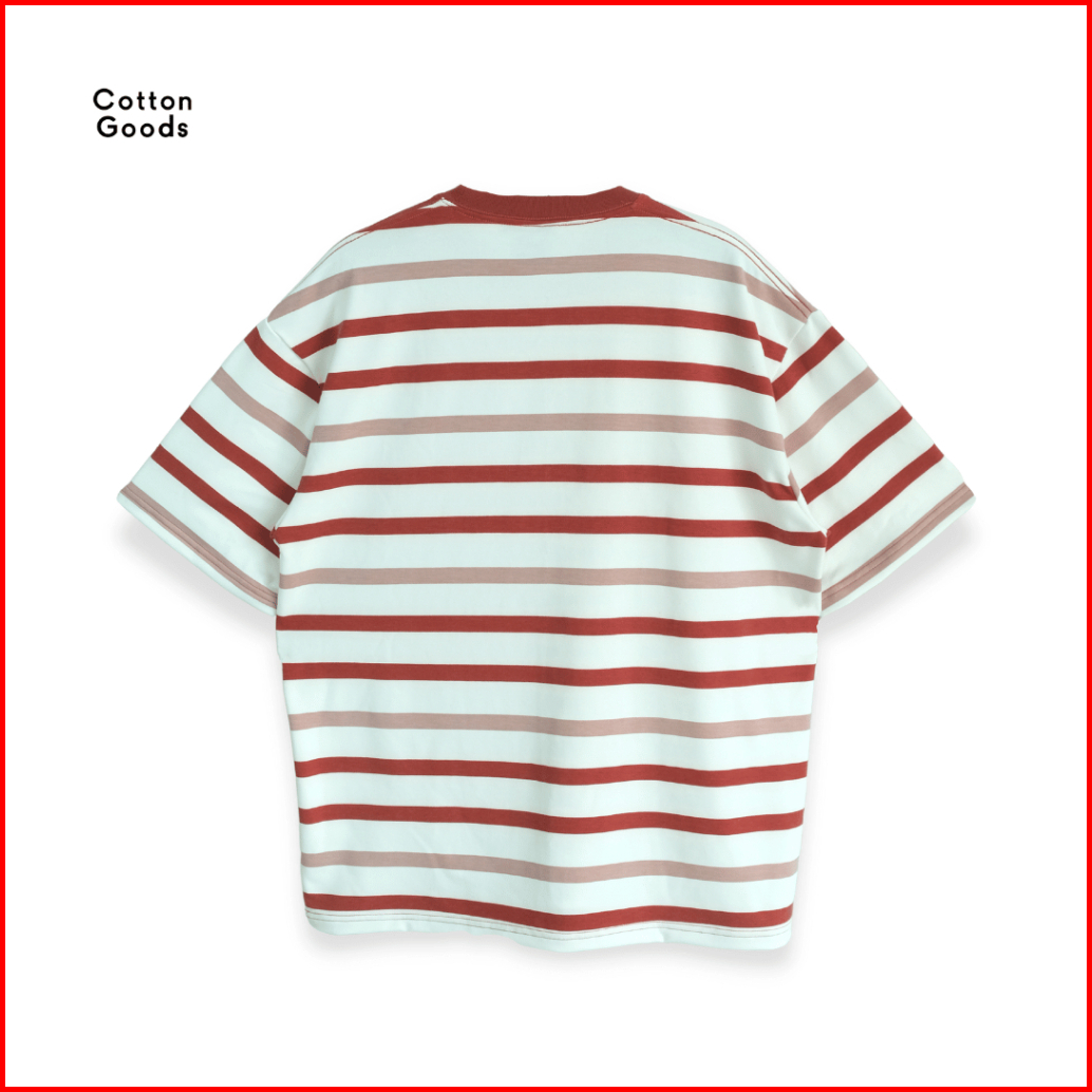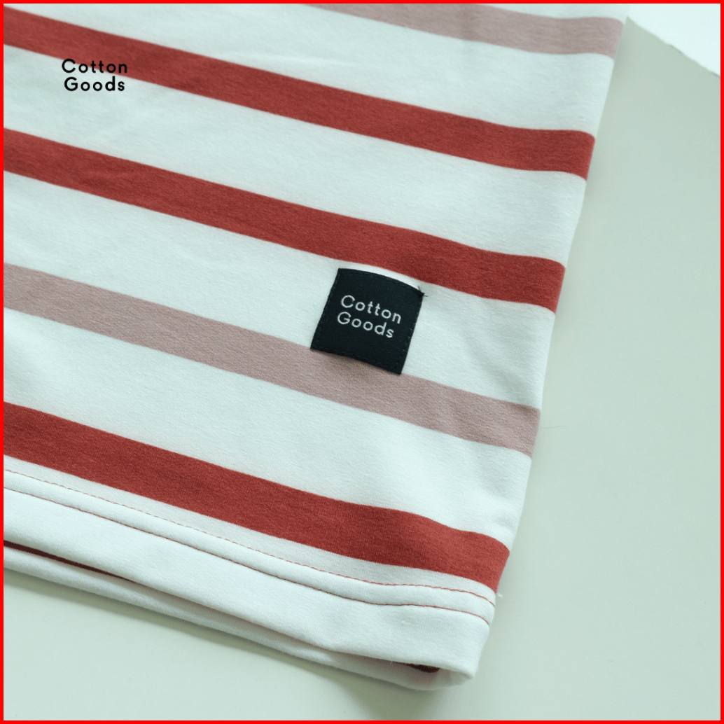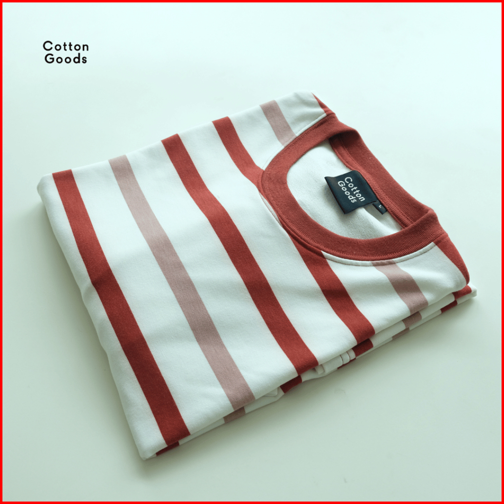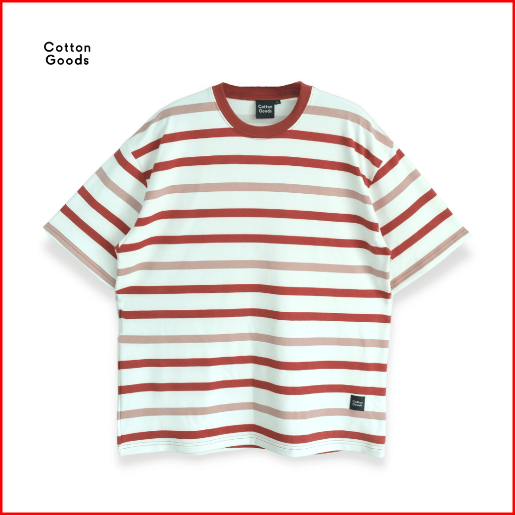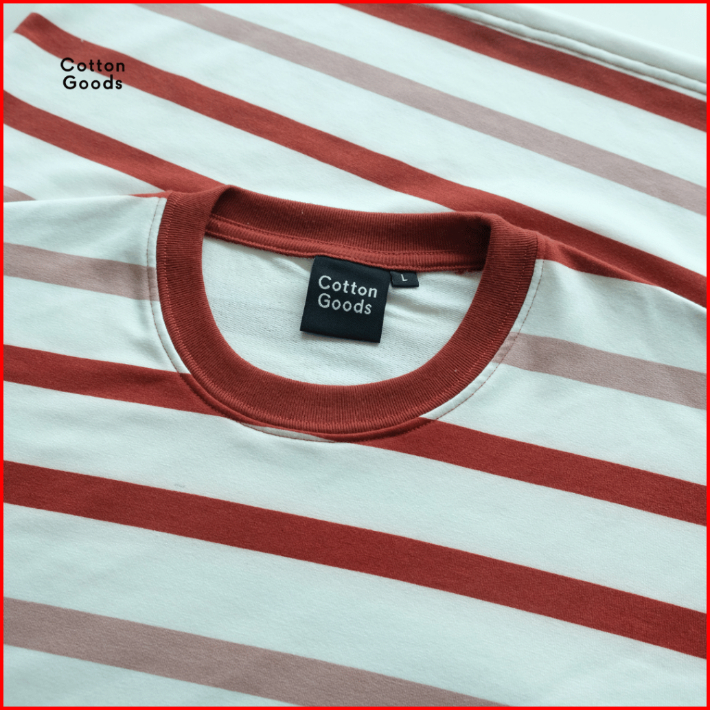 Cotton Goods Kaos Oversized Striped Tiga Warna Baby Terry Gino White Maroon Red Tees