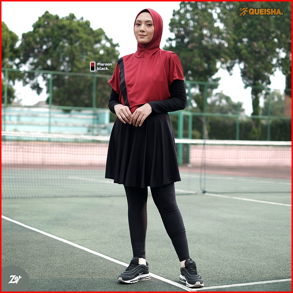 Zaneva - Queisha Hoodie Hijab Sporty By Zaneva Terbaru Kekinian Modern Simple Adem