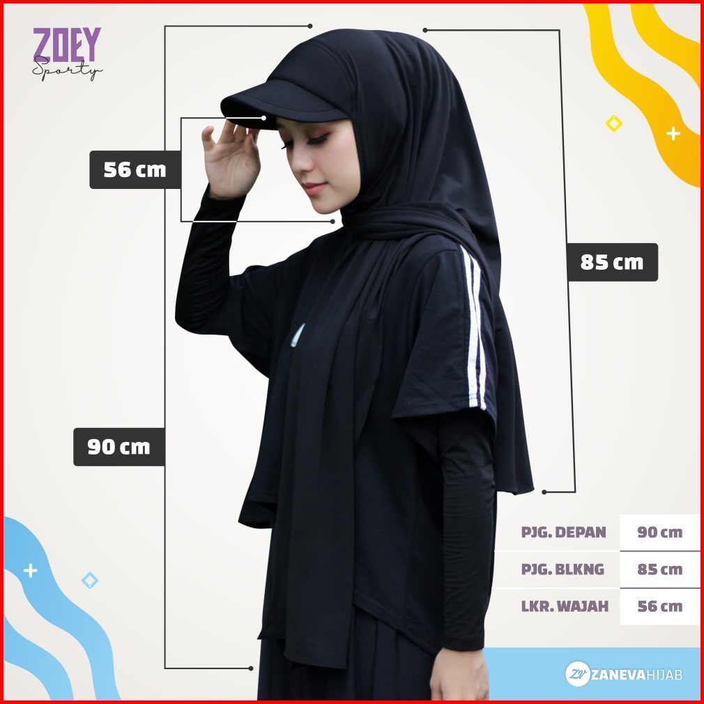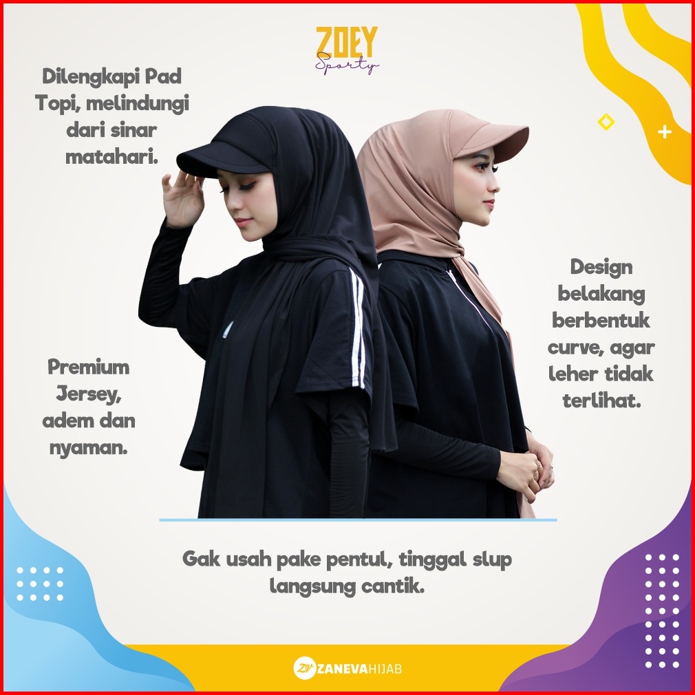 Zaneva - Zoey Pahmina Topi Sport Jersey By Zaneva Hijab Olahraga Terbaru Kekinian