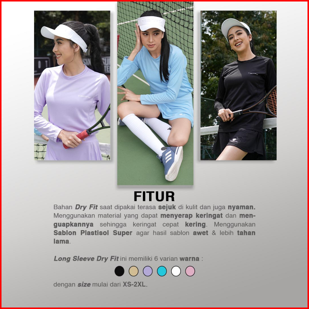 Tiento Kaos Running Dry Fit Baju Olahraga Wanita Lengan Panjang Gym Pakaian Sport Lari