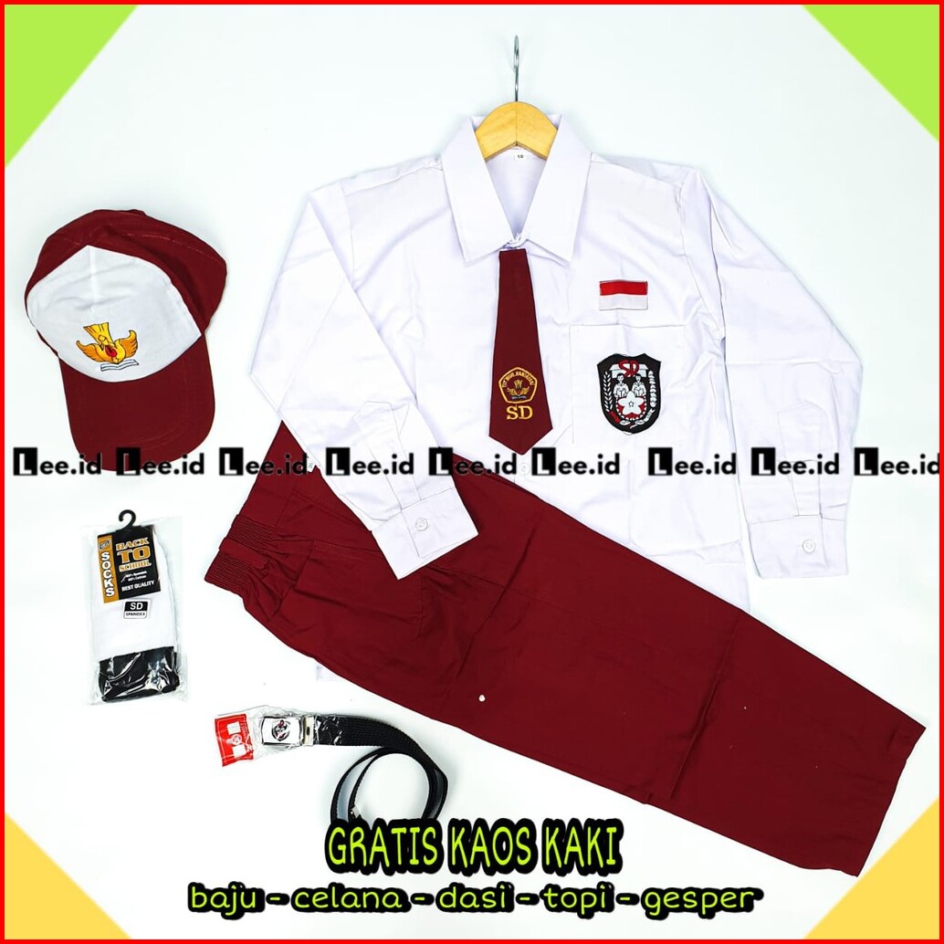 Lee Setelan Super Lengkap Seragam Sekolah Sd Merah Putih Lengan Panjang Laki-laki Kelas 1-6 Sd