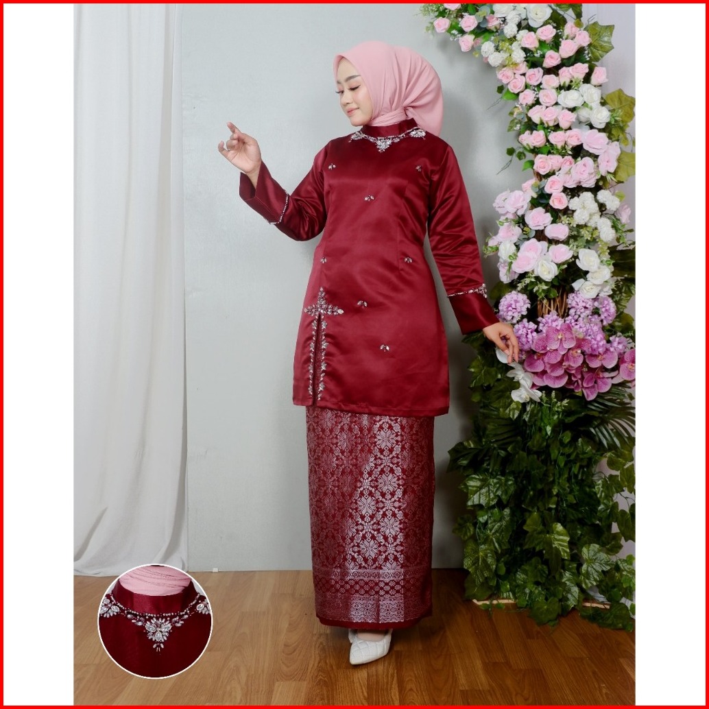 Set Kebaya Tunik Rosalie Baju Kurung Wisuda Terbaru Set Baju Kurung Melayu Set Tunik Payet Modern Bahan Satin Bridal Pre
