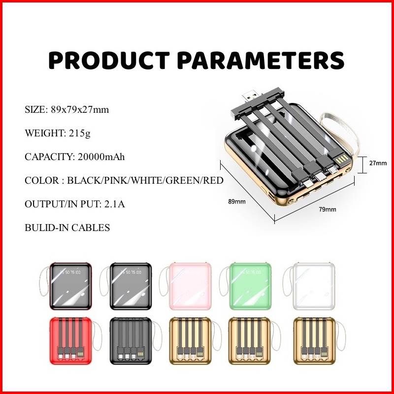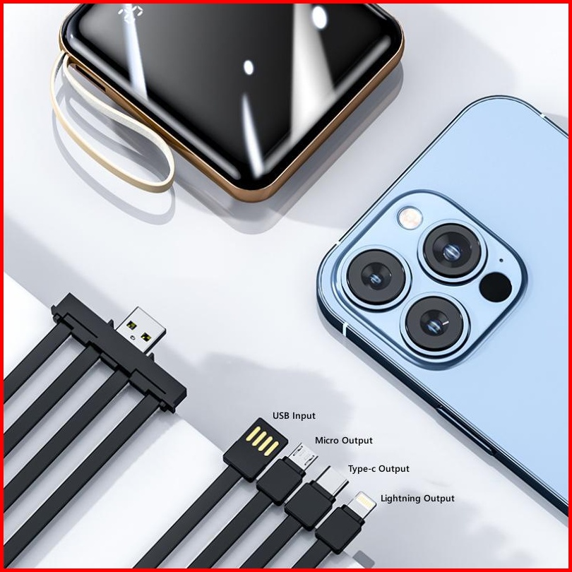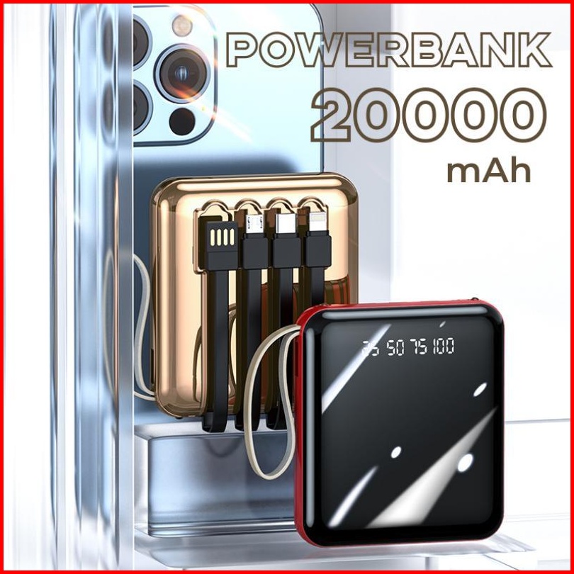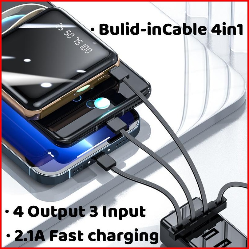 Powerbank 20000mah Power Bank Pawer Bank Original 100 Ori Pengisian Fast Charging 4in1 Cable Full Capacity Mini Powerban