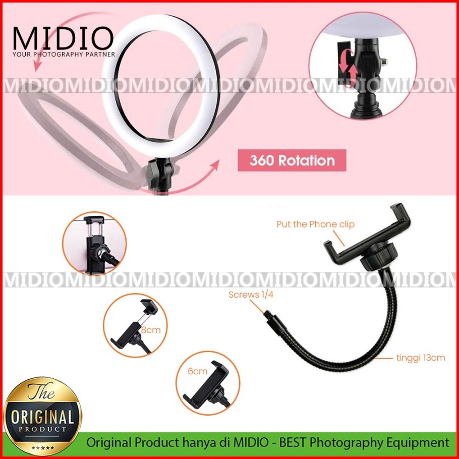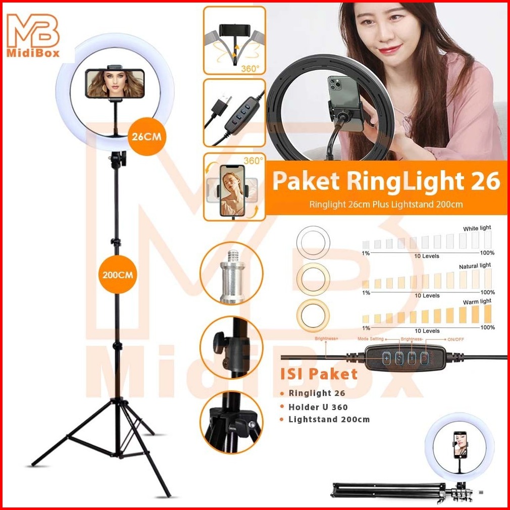 Paket Komplit Ringlight 26cm Tripod 2 Meter Make Up Vlog Lampu Ringlight 26