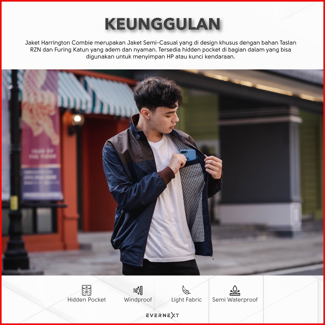 Evernext - Jaket Pria Jaket Harrington Combie Jaket Casual Pria Jaket Motor Windproof Jaket Outdoor