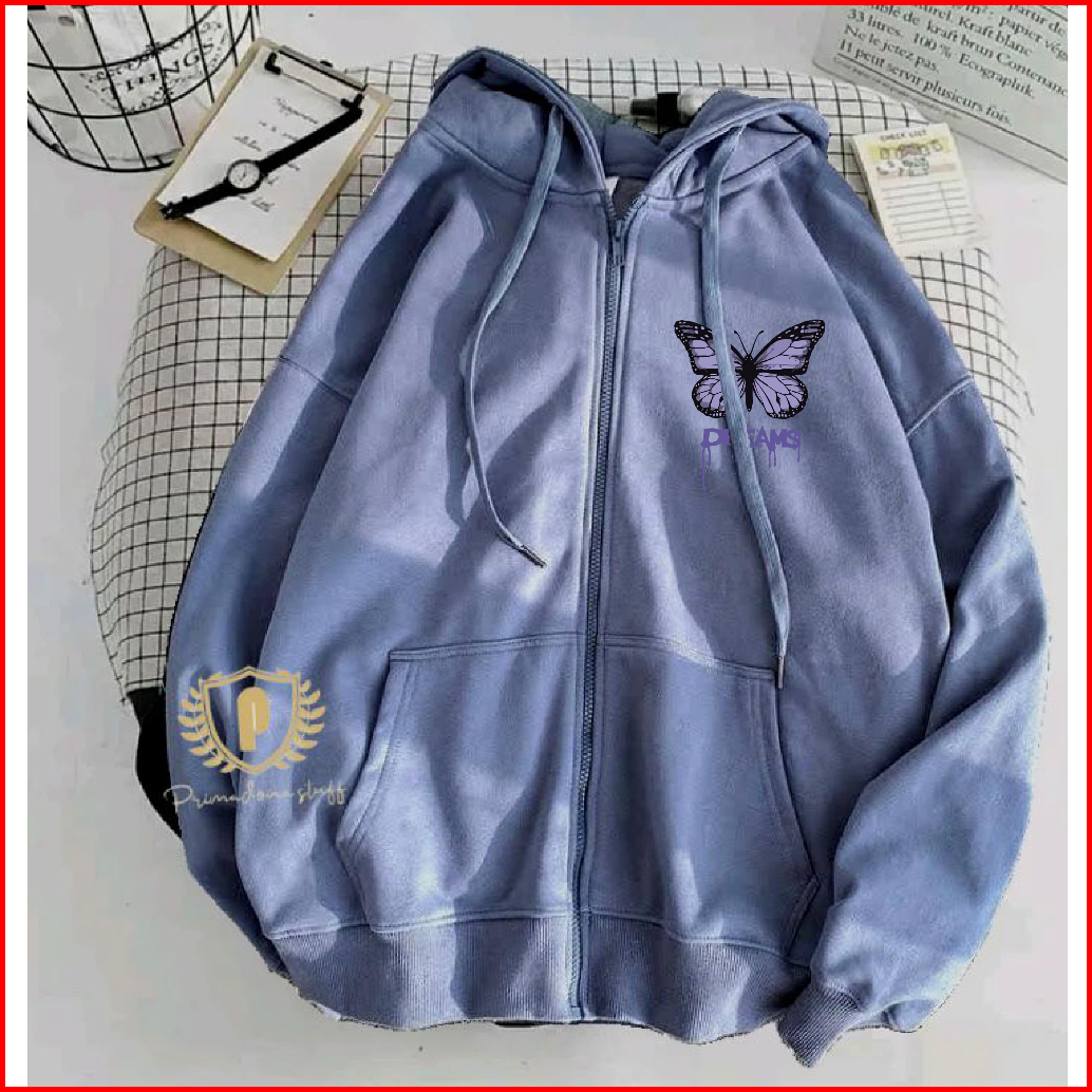 Butterfly Jacket Simpel Dream Zipper Hoodie Motif Terbaru Kupu Kupu Aesthetic Viral Trendy Cewek Cowok