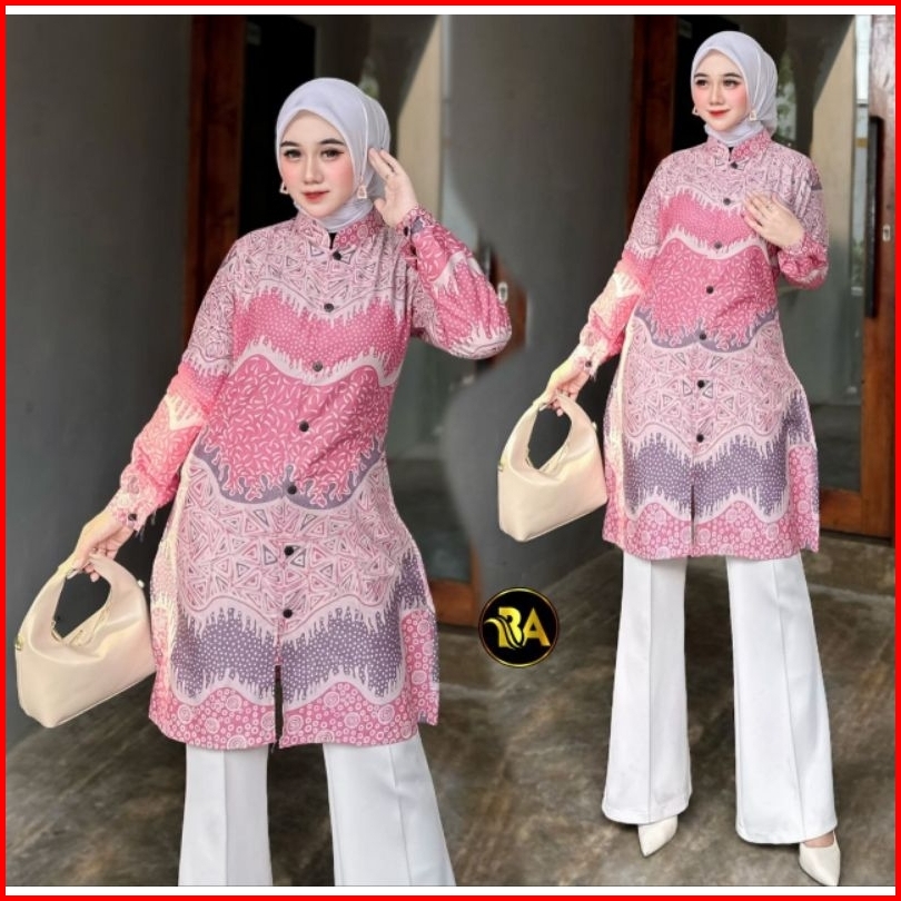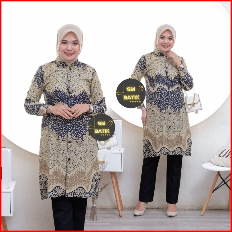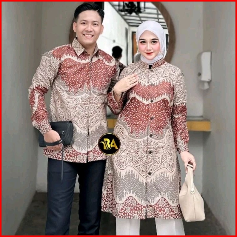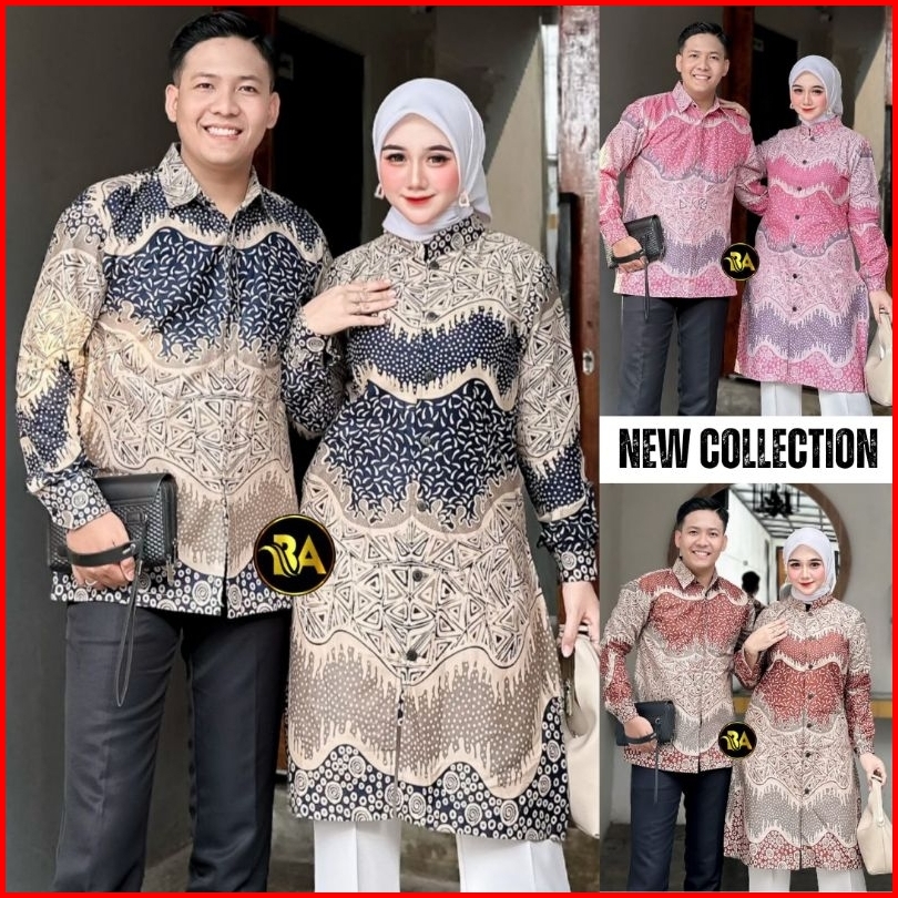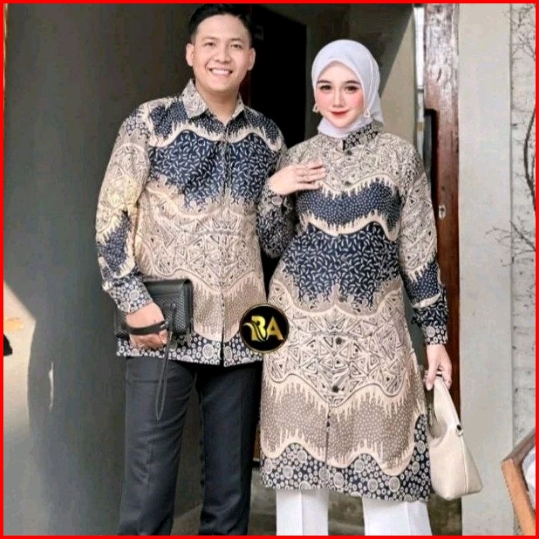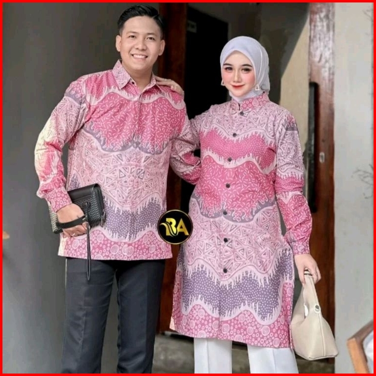 Batik Couple Gmbatik - Baju Batik Couple Tunik Kancing Depan Kemeja Batik Lengan Panjang