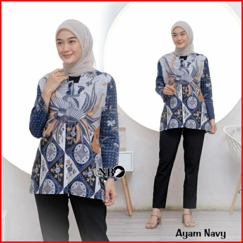 Batik Couple Keluarga Terbaru Motif Ayam Navy