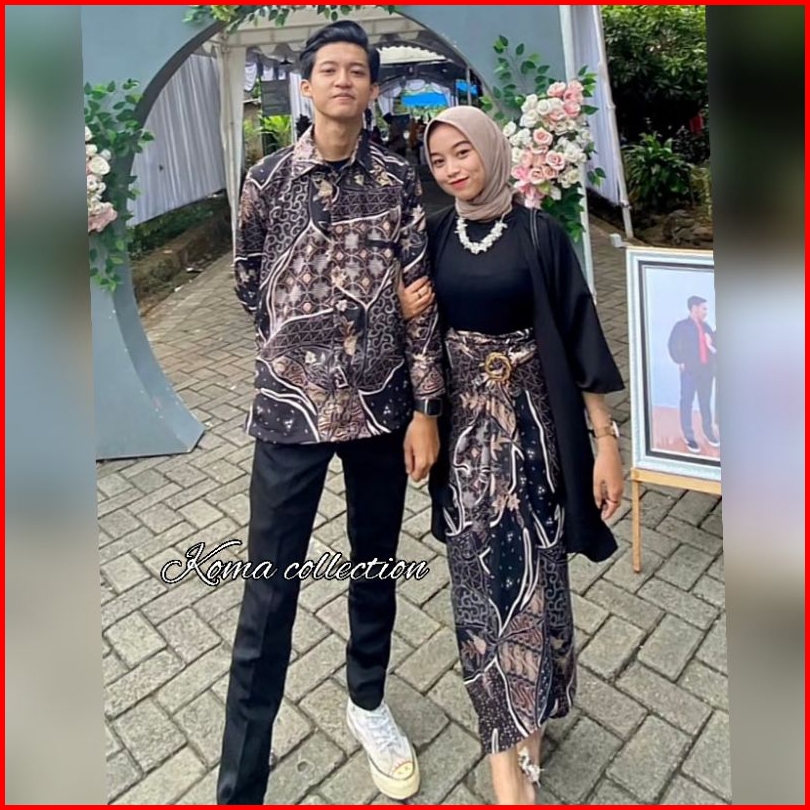 Baju Couple Kemeja Batik Pria Dan Rok Lilit Motif Asta Coklat Couple Kemeja Lengan Panjang Kondangan Kemeja Batik Dan Ro