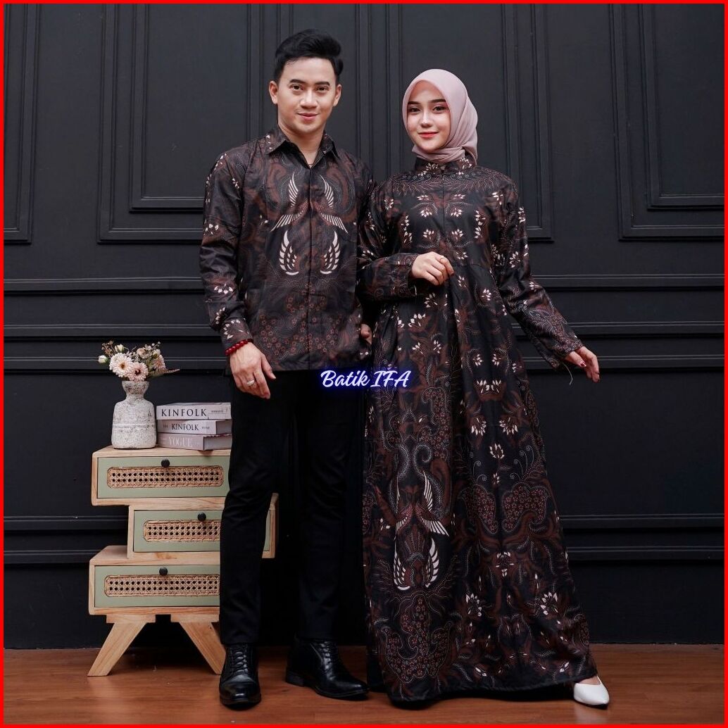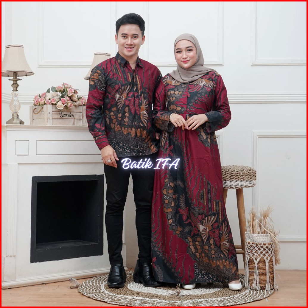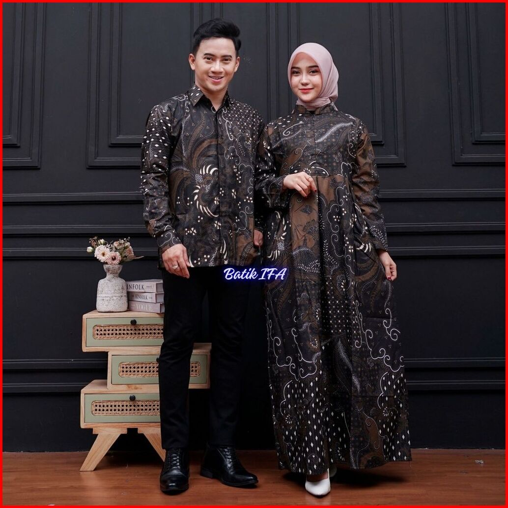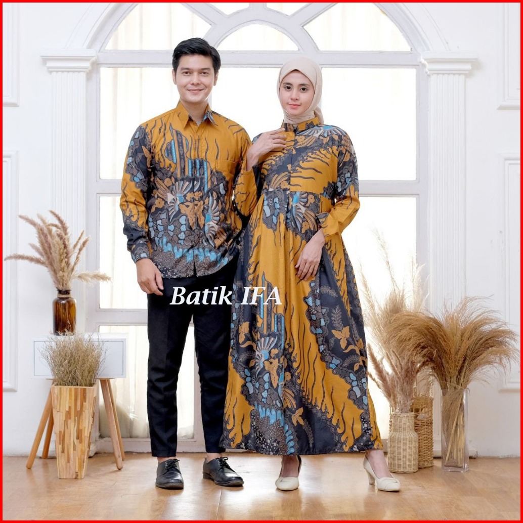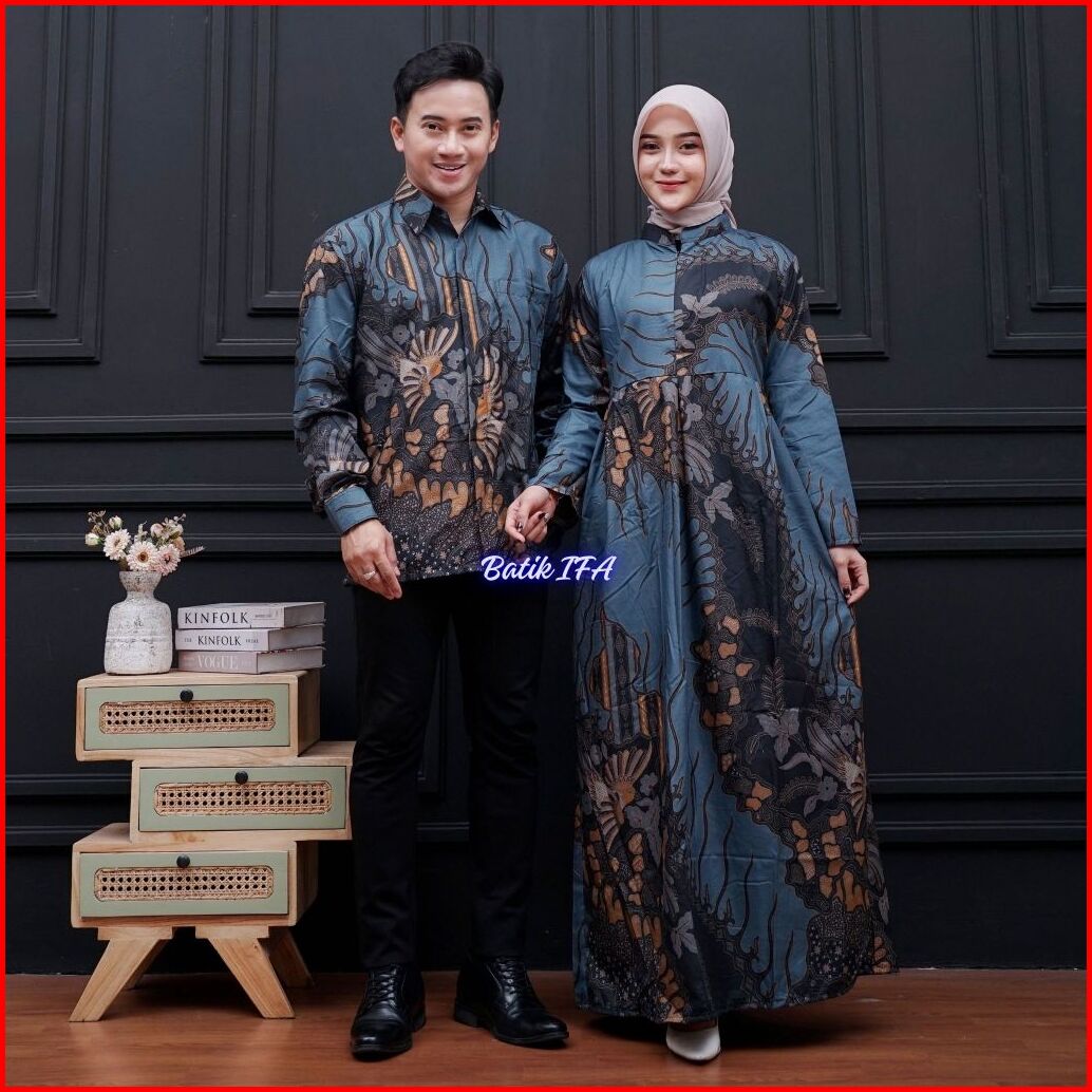 Couple Batik Keluarga - Sarimbit Batik Kemeja Dan Gamis Lengan Panjang - Batik Ifa