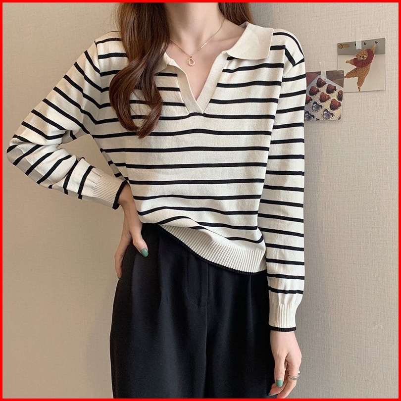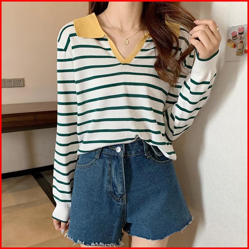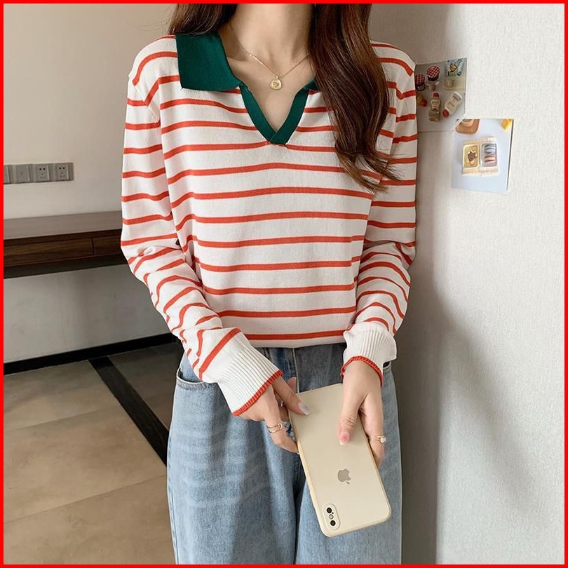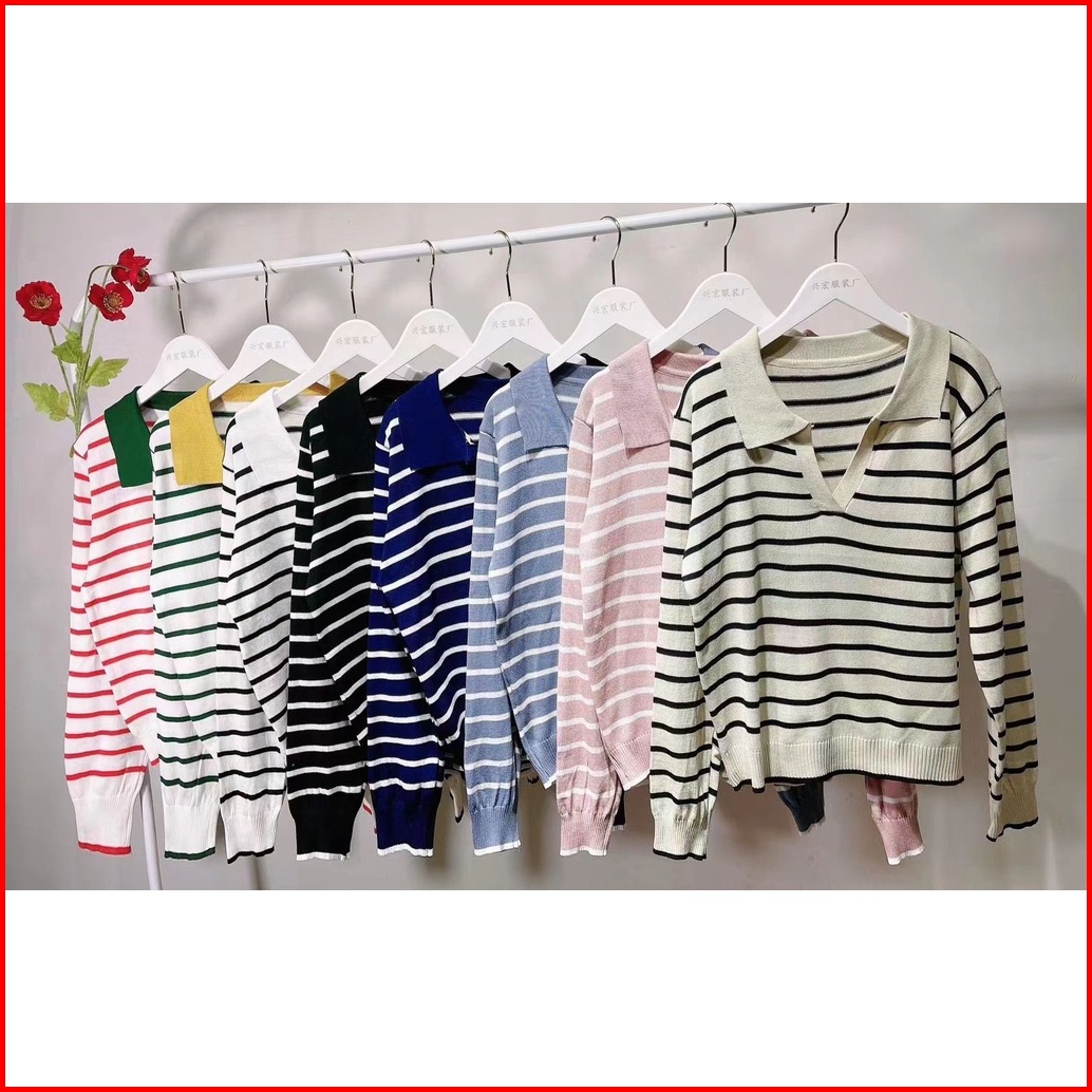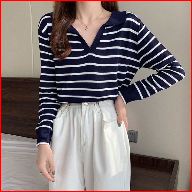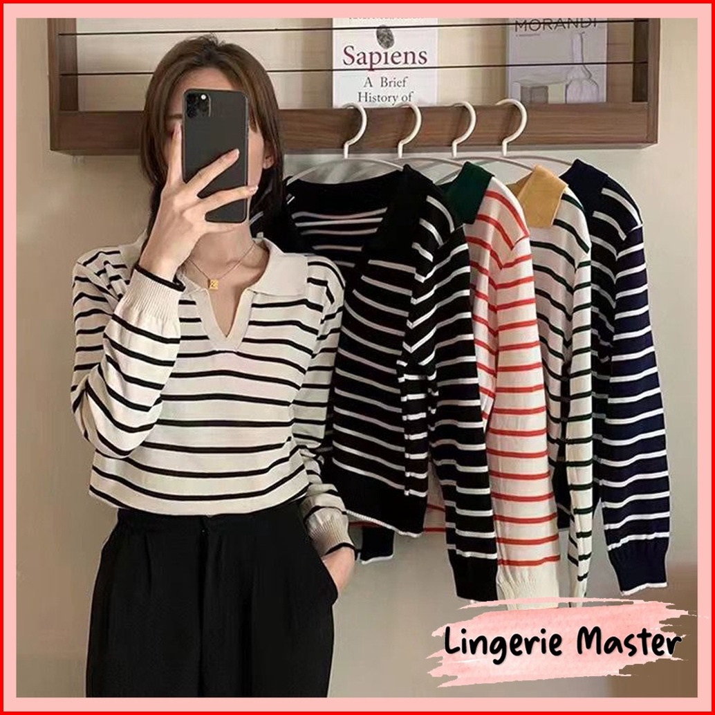 Lingerie Master - T-21 Knitwear Sweater Crop Rajut Sweater Bergaris Baju Rajut Import Crop Top Lengan Panjang