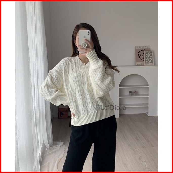 Ladiora - Neva Cable Sweater Sweater Rajut Tebal
