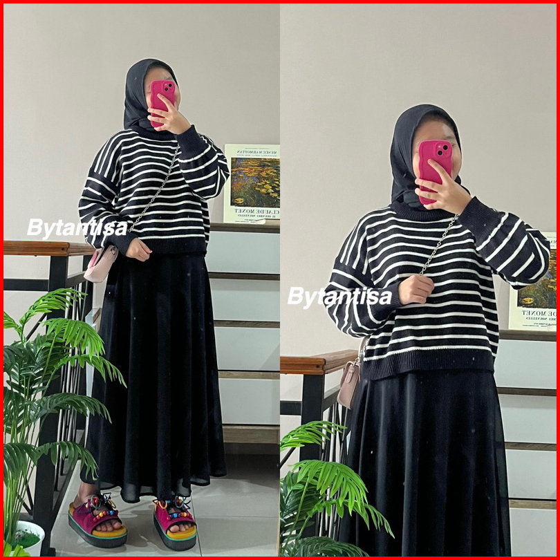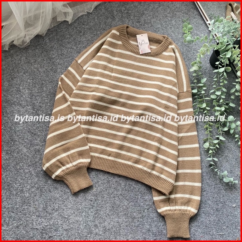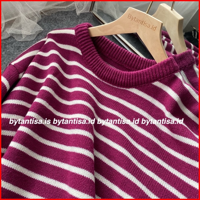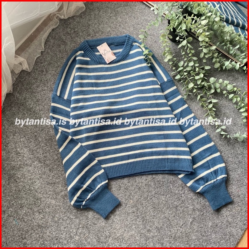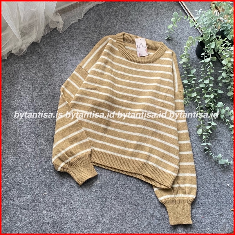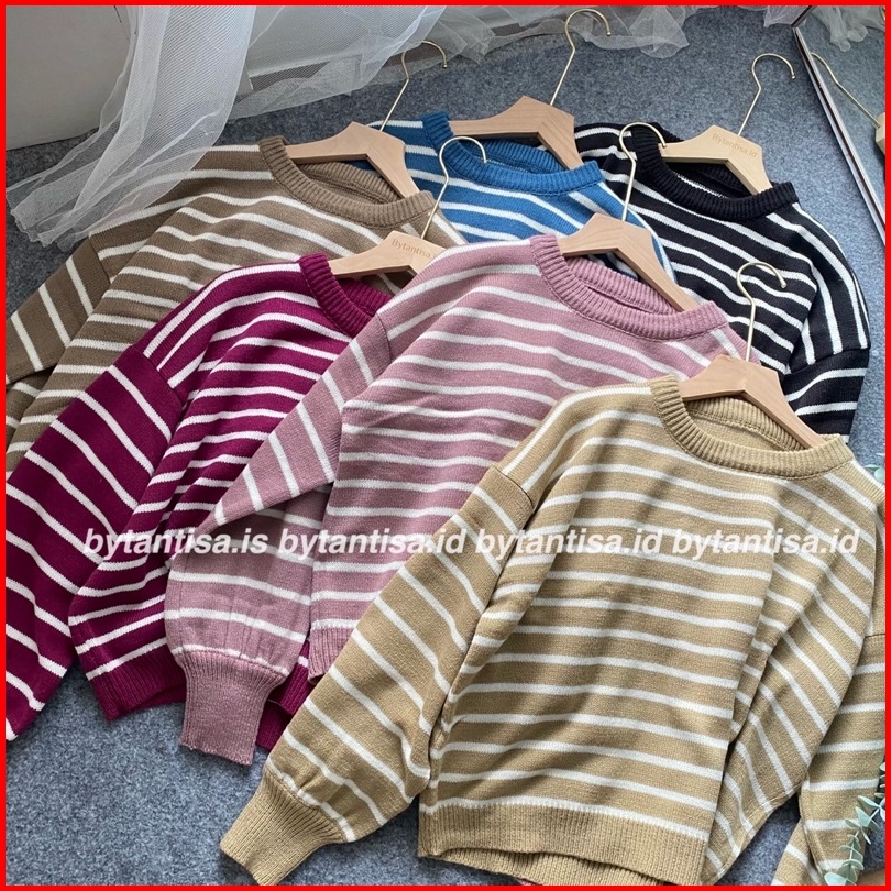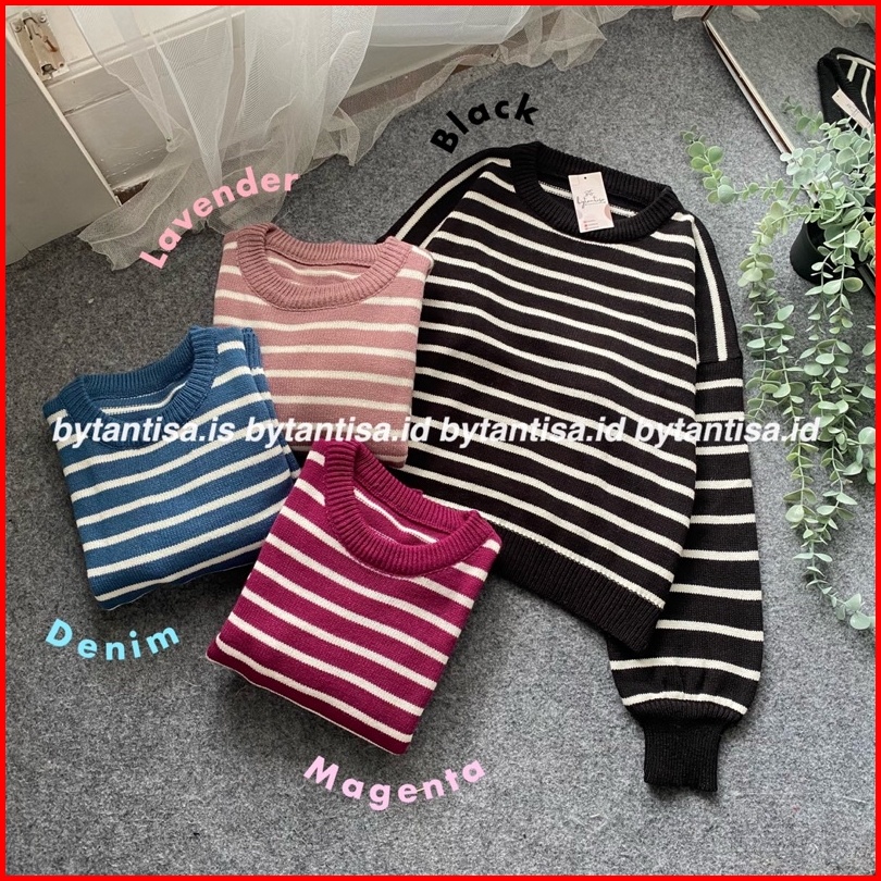 Sweater Rajut Oversize Crop Motif Garis Joly